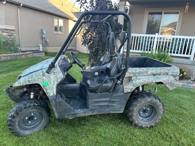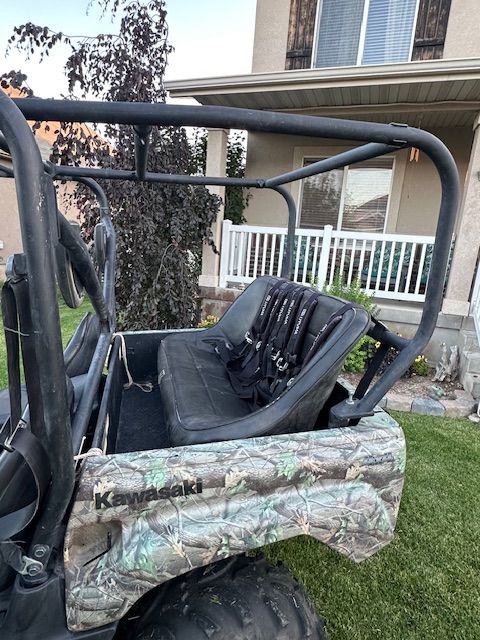 Reliable and durable machine. Originally came with a tilting dump cargo bed. We upgraded it with a professionally installed 3‑seat rear bench with 5‑point harnesses. Perfect for young kids. The rear seats can be removed at any time to return it to a full cargo bed. Includes softshell cover. Runs strong and stored in garage.