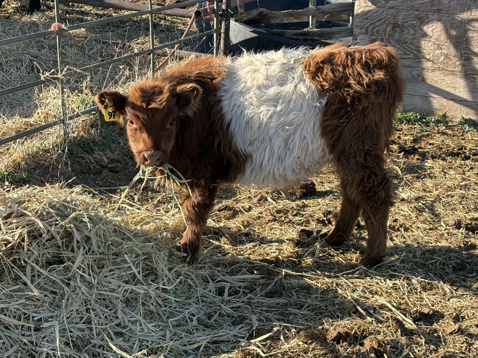2 small framed Belted Galloway steers for sale. Possible delivery available. Born Fall 2025.