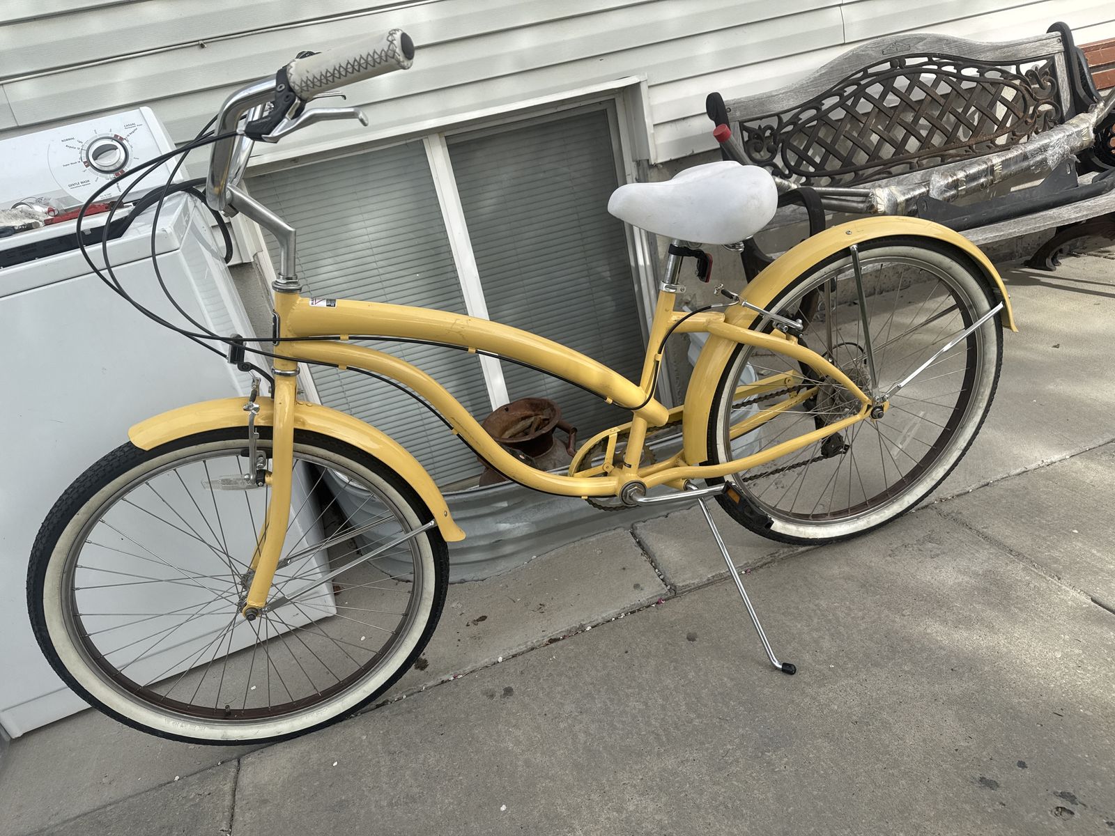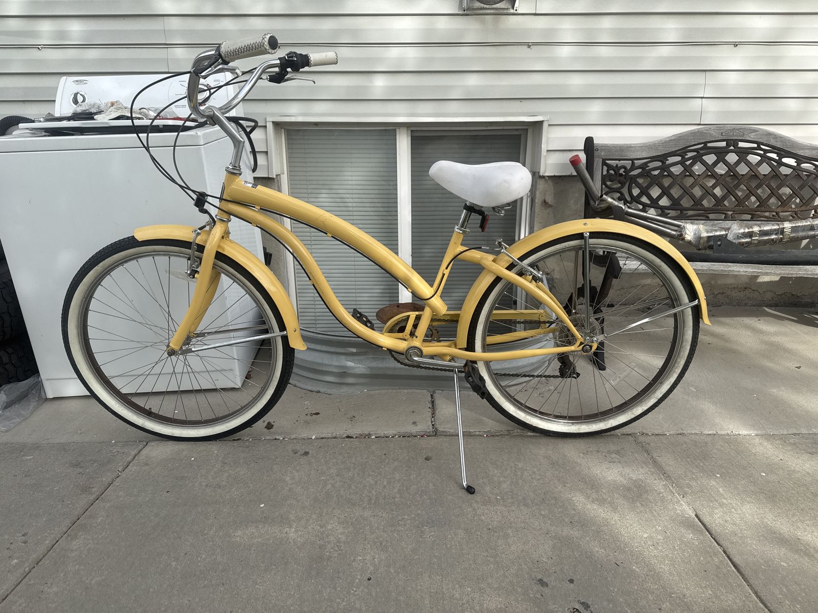 This Bike is still in good condition. Still in good shape. Both tires hold air tire treads are still good , tire size is 26 , frame is still solid and has no cracks, seat is good, chain is good, pedals are good , handle bars or good , no rust , 7 speed , shifter works great & rides smooth with no issues