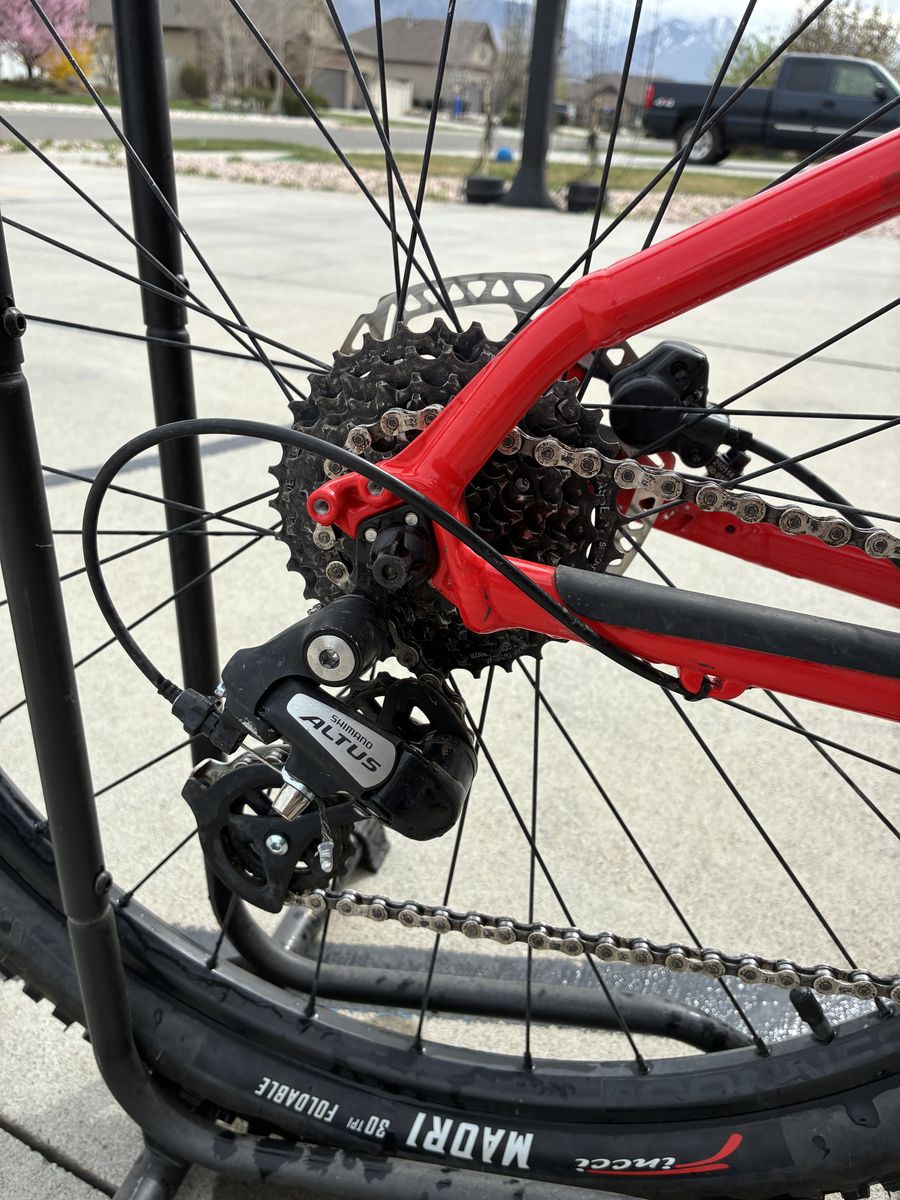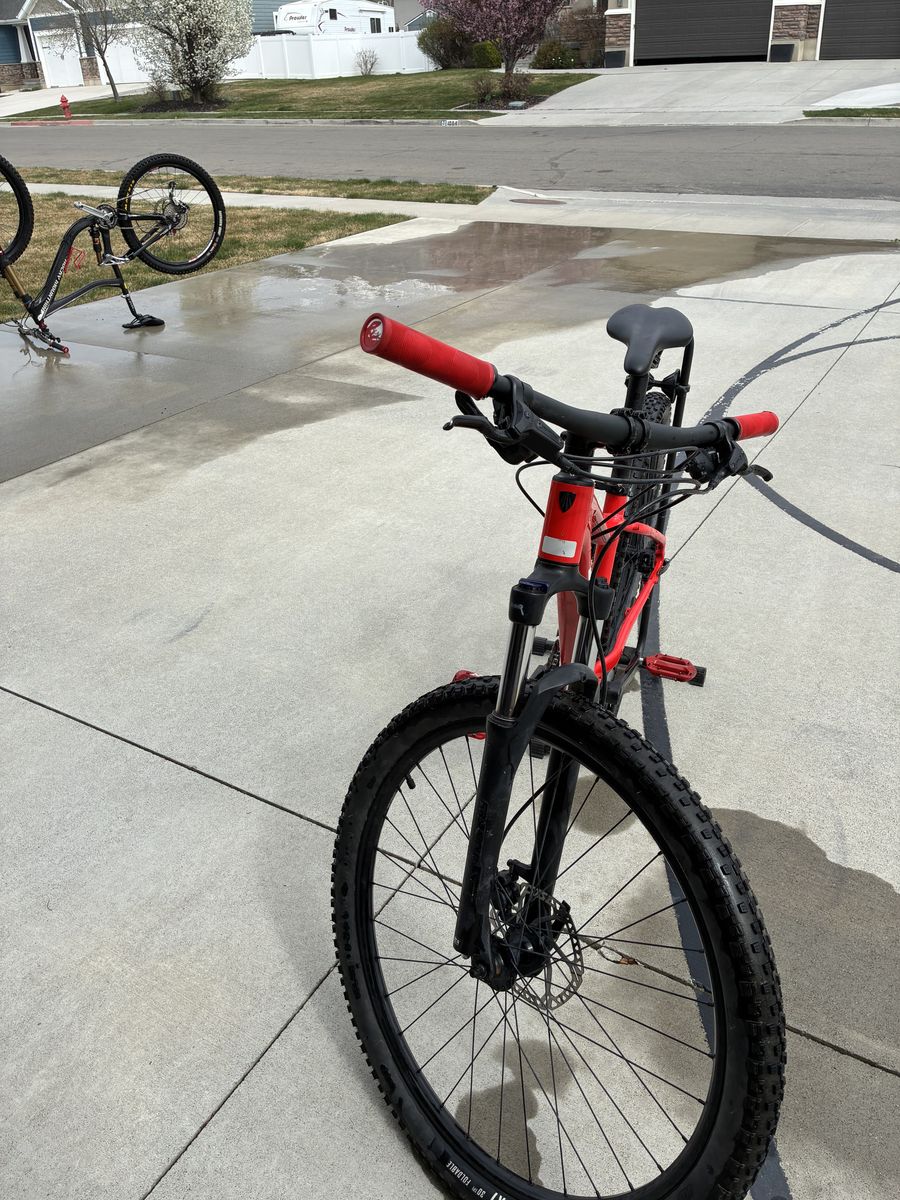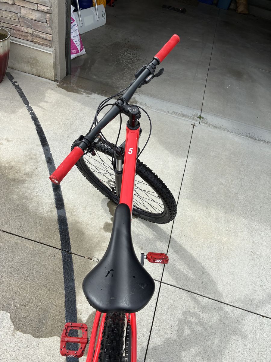 I have had it for about 2 years and used it for one season of NICA racing. Keep up with maintenance and very few scratches. Has brand new chain and semi new brakes, Raceface pedals(flats), and new grips. Amazing for beginners/intermediate mountain bikers and cross country riders. The hard tail design makes it easy and comfortable uphill. And the xct sr Suntour shocks make it nice and smooth for downhill. Fincci mandri tires come with a decent bit of tread left only road on them for less than 200 miles.