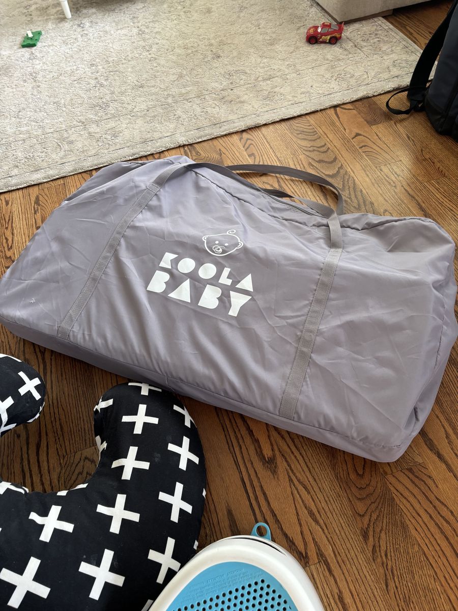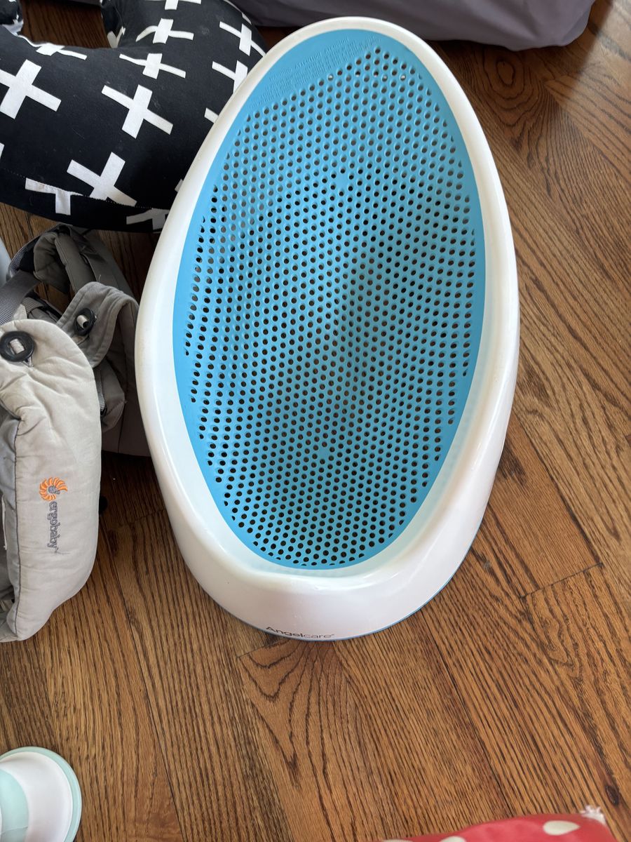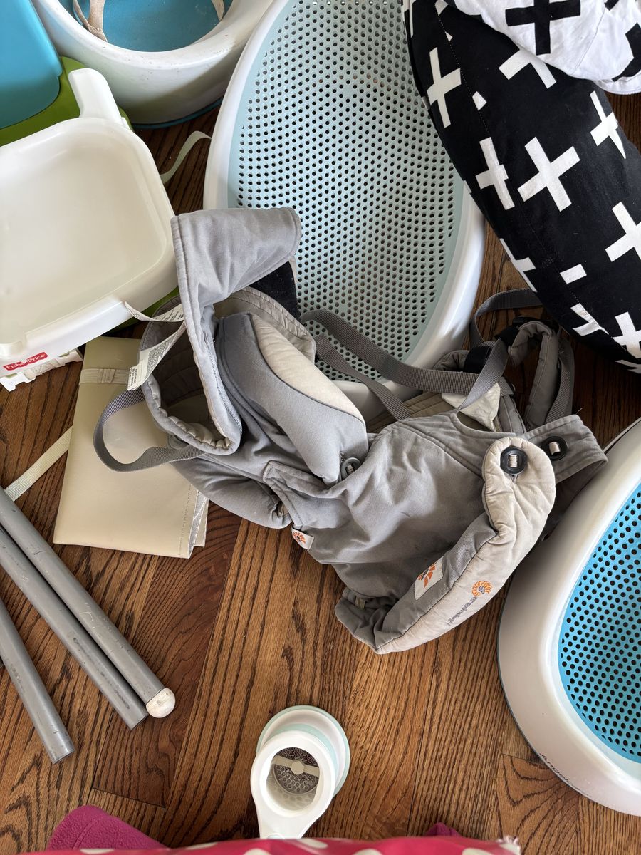 IKEA high chair, nursing pillow, two baby baths, two table boosters, and two baby gates.