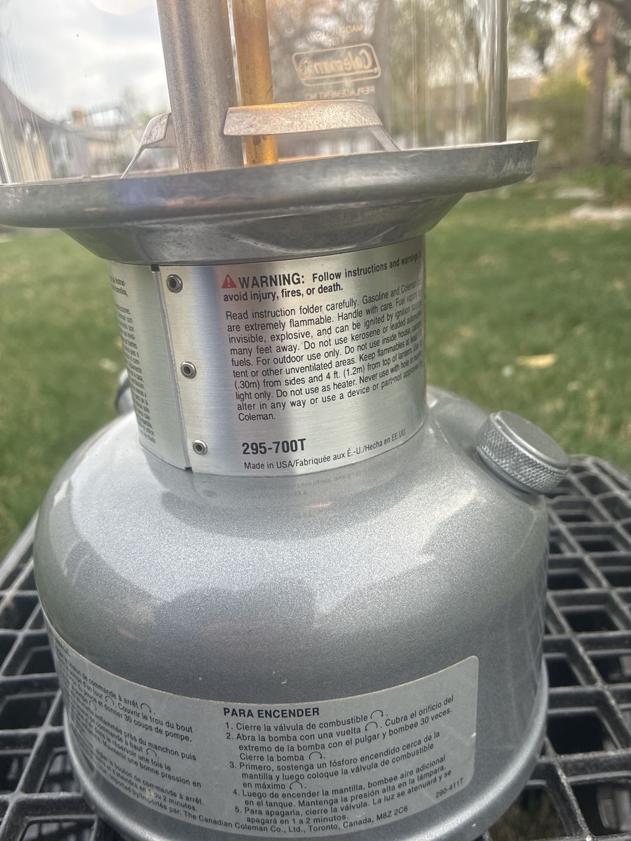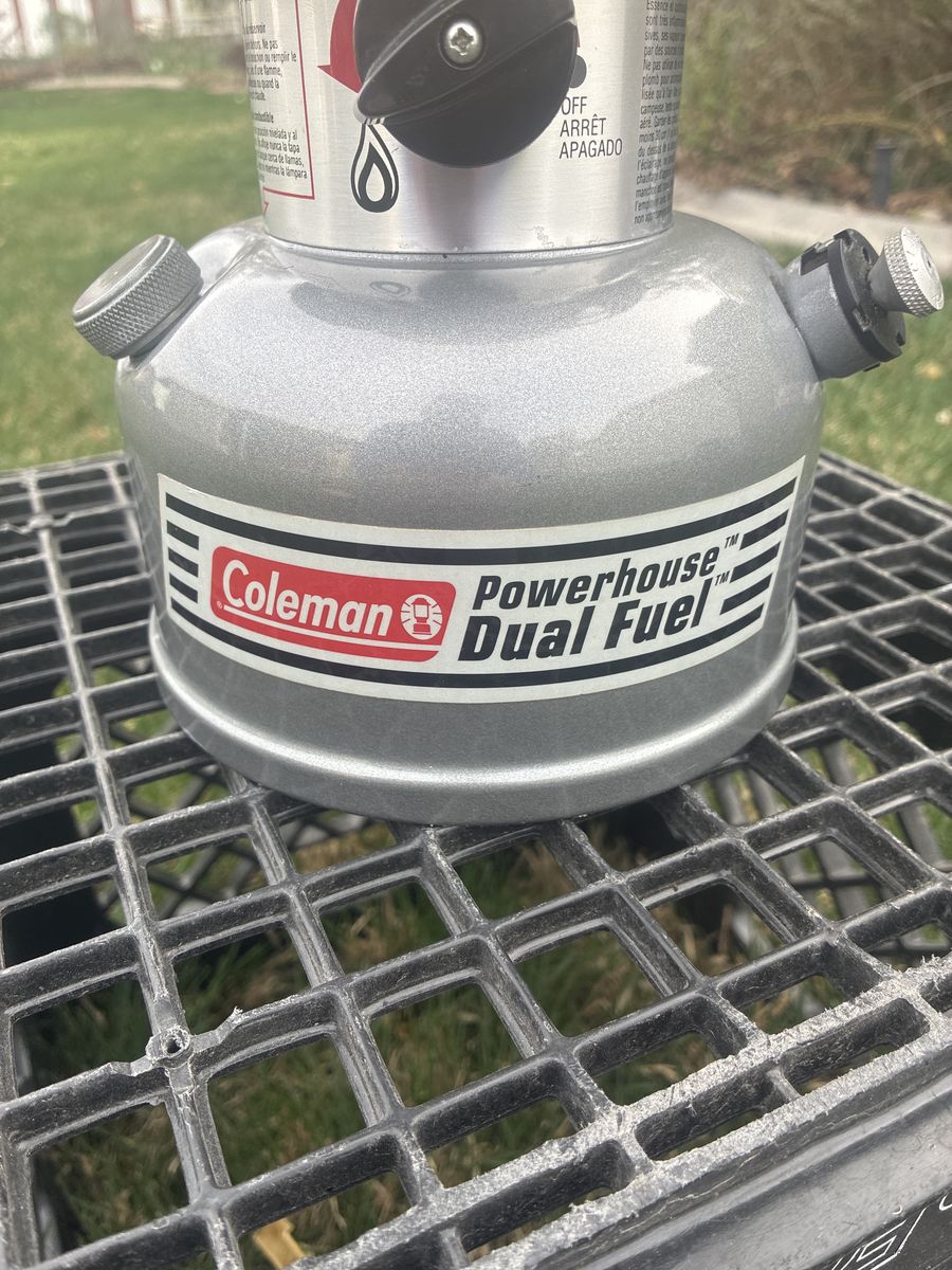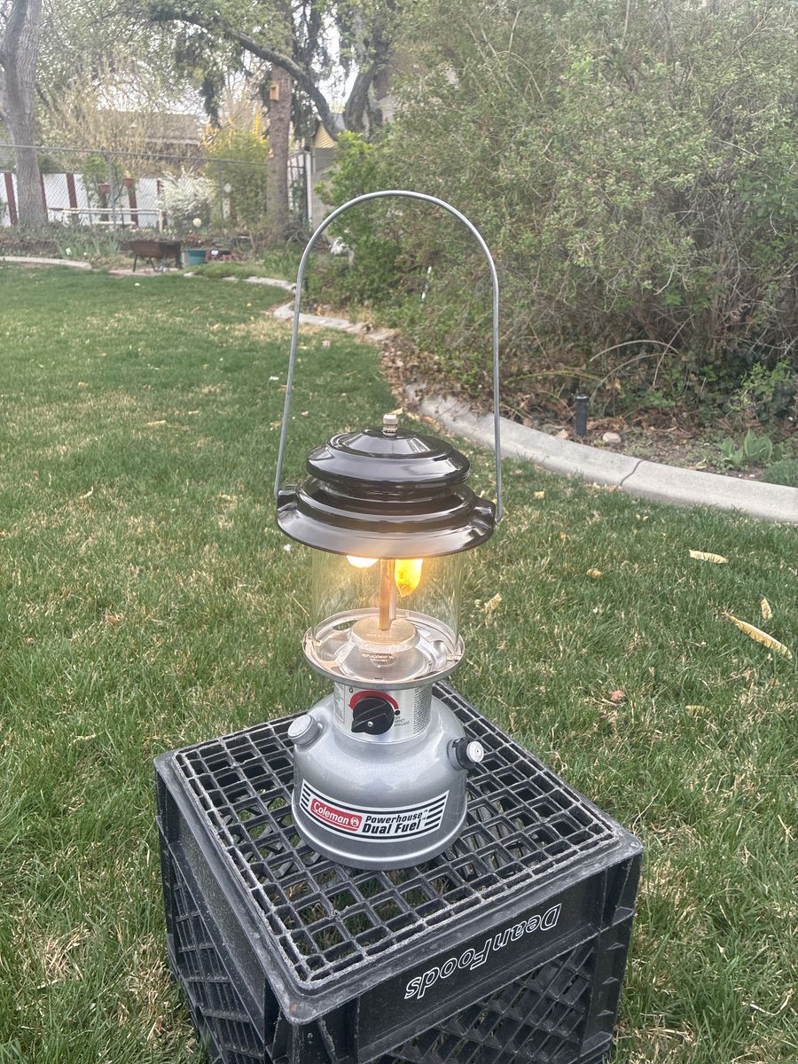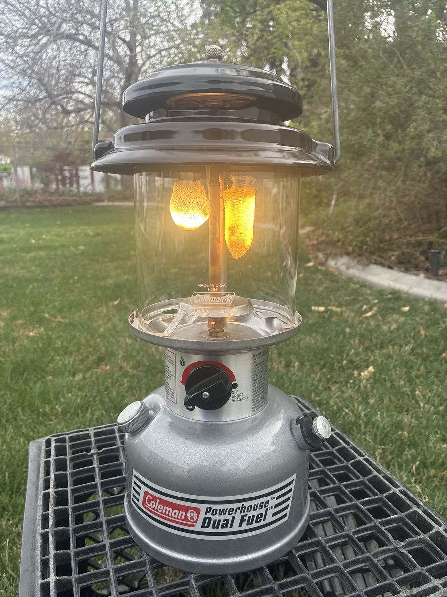 Coleman Powerhouse Dual Fuel Lantern. 07/02 date stamp. Great condition, pumps up and runs great. Clean and ready for years of use. 40$