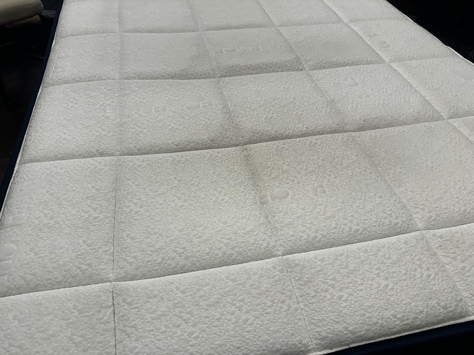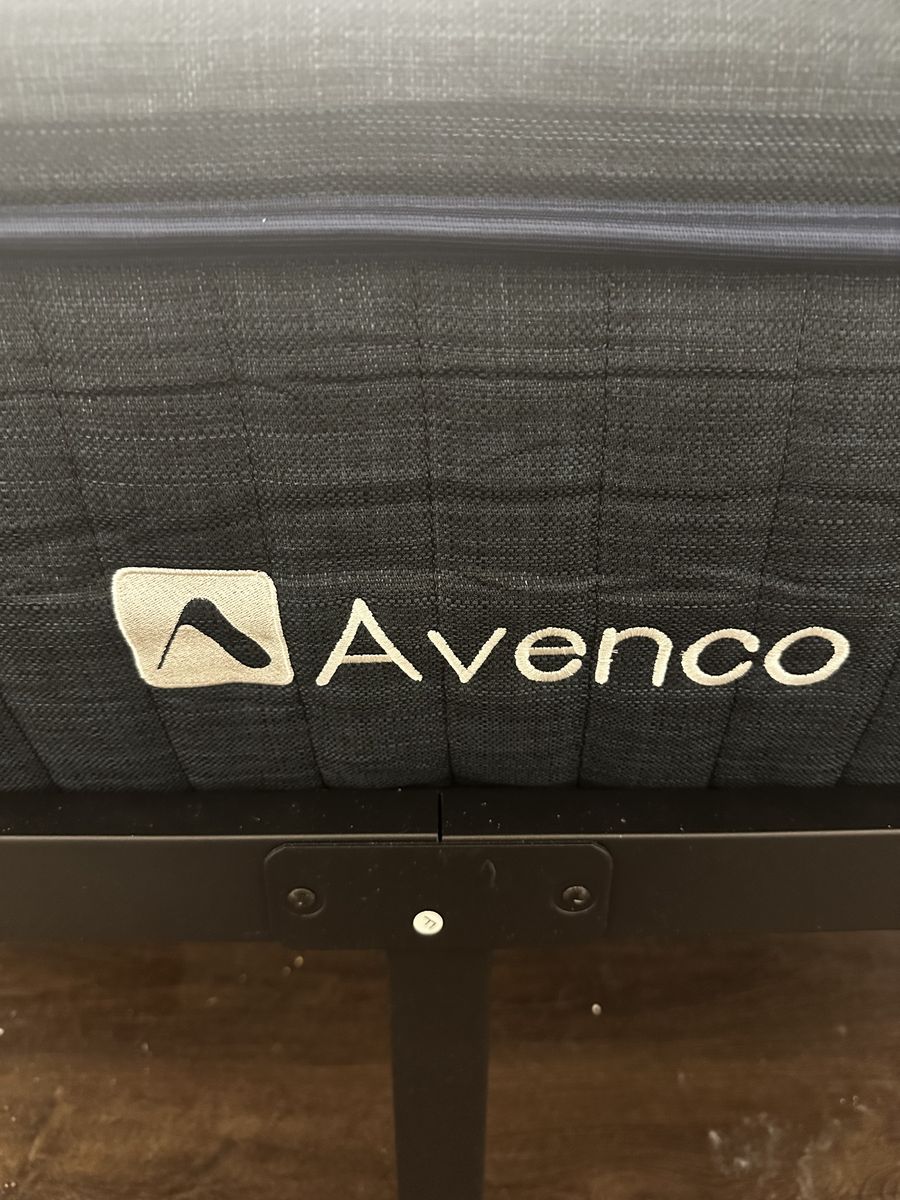 Selling a full-size Avenco mattress with metal bed frame included.\