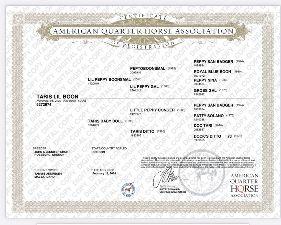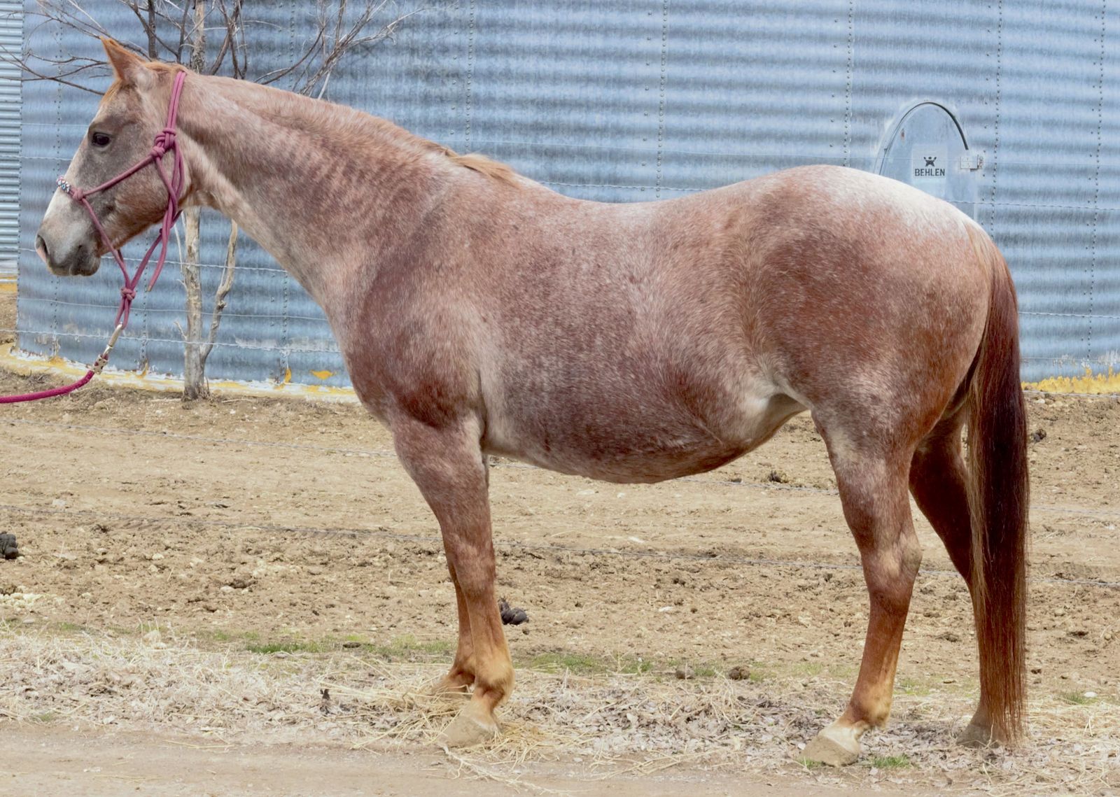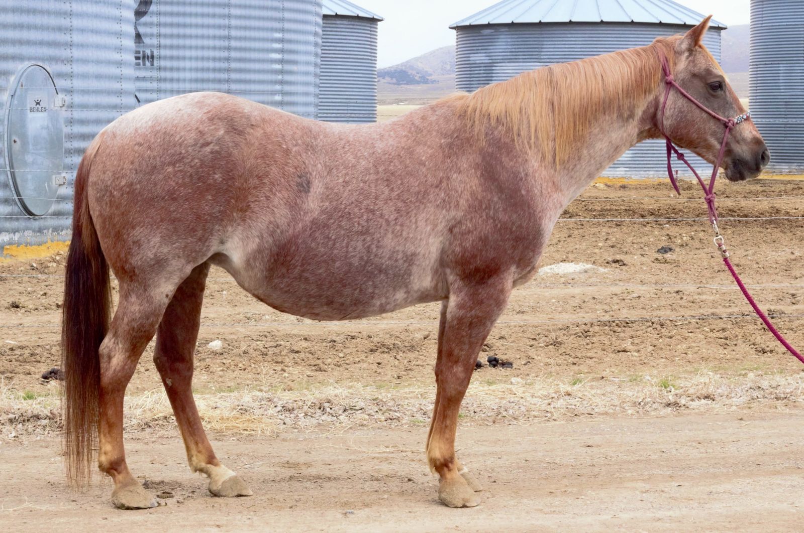 Poppy is a granddaughter to PEPTOBOONSMAL and a gorgeous red roan she is an eye catcher! 14.3 hands and shapey not dainty built, she is currently in foal to my stallion guaranteed palomino or buckskin, will probably be a roan as well every foal she’s had has been roan, she is not panel or color tested, she is due on April 17th so less than a month, due to personal reasons we are offering her for a limited time, price is not negotiable, foal can be registered through AQHA, this mare prefers the broodmare life that’s all we are offering her as, although she was broke to ride before she started having babies, she can be difficult to catch in a pasture once caught she’s decent to be around, ties, loads, good to blanket, but needs a patient farrier