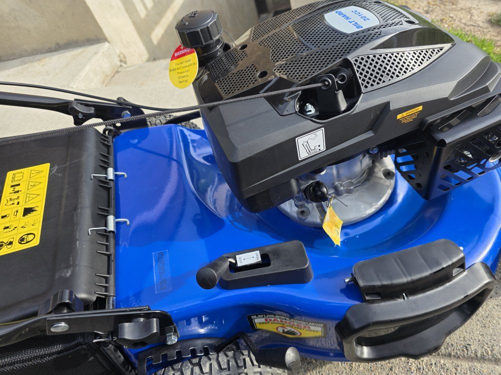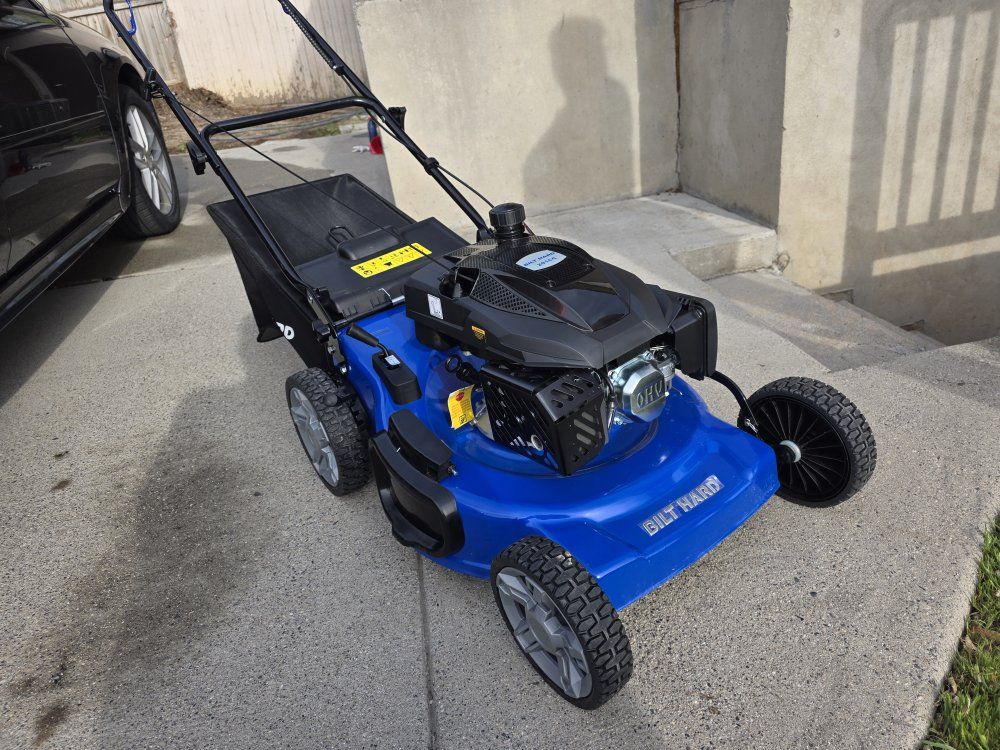 Venmogot this mower for new place with yard but found out landlord maintains yard. has only been run once, starts first pull side or rear mode and still has stickers on it asking 250 100 off what it was before it had oil added and has used less than a tank if gas