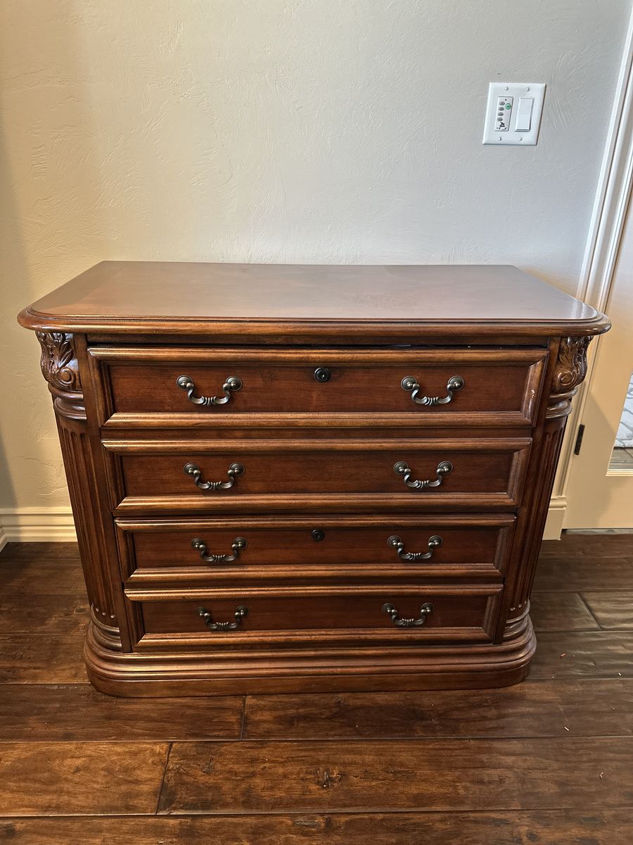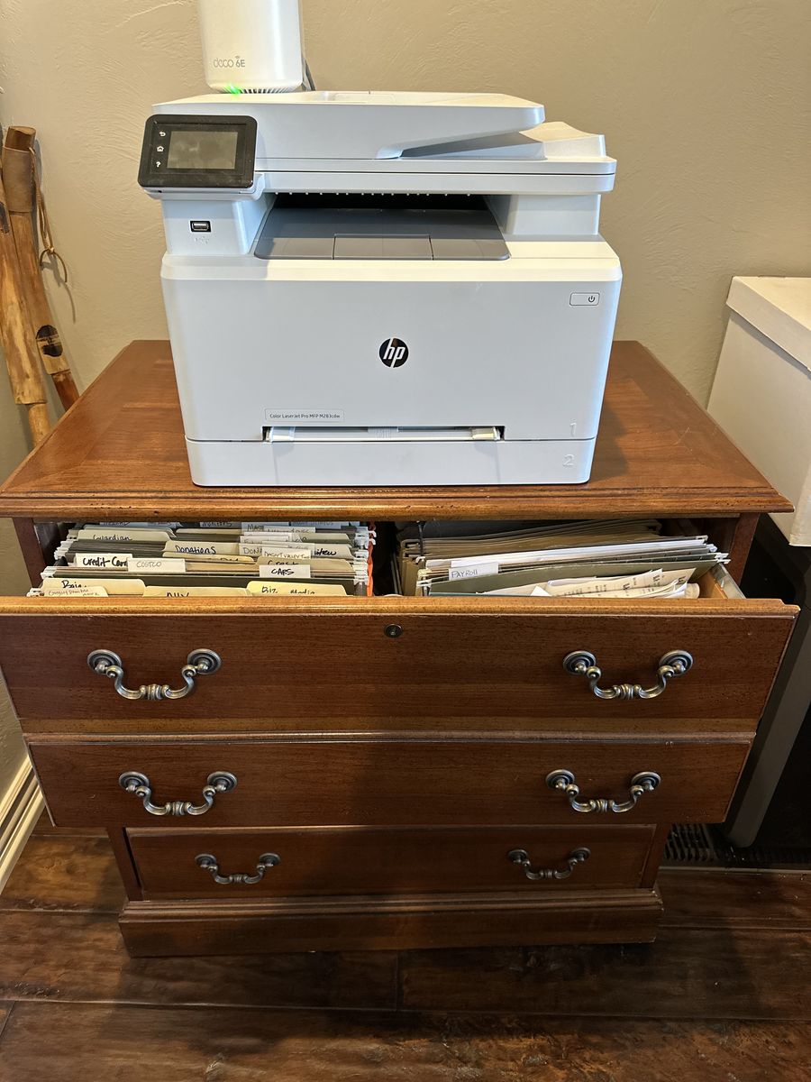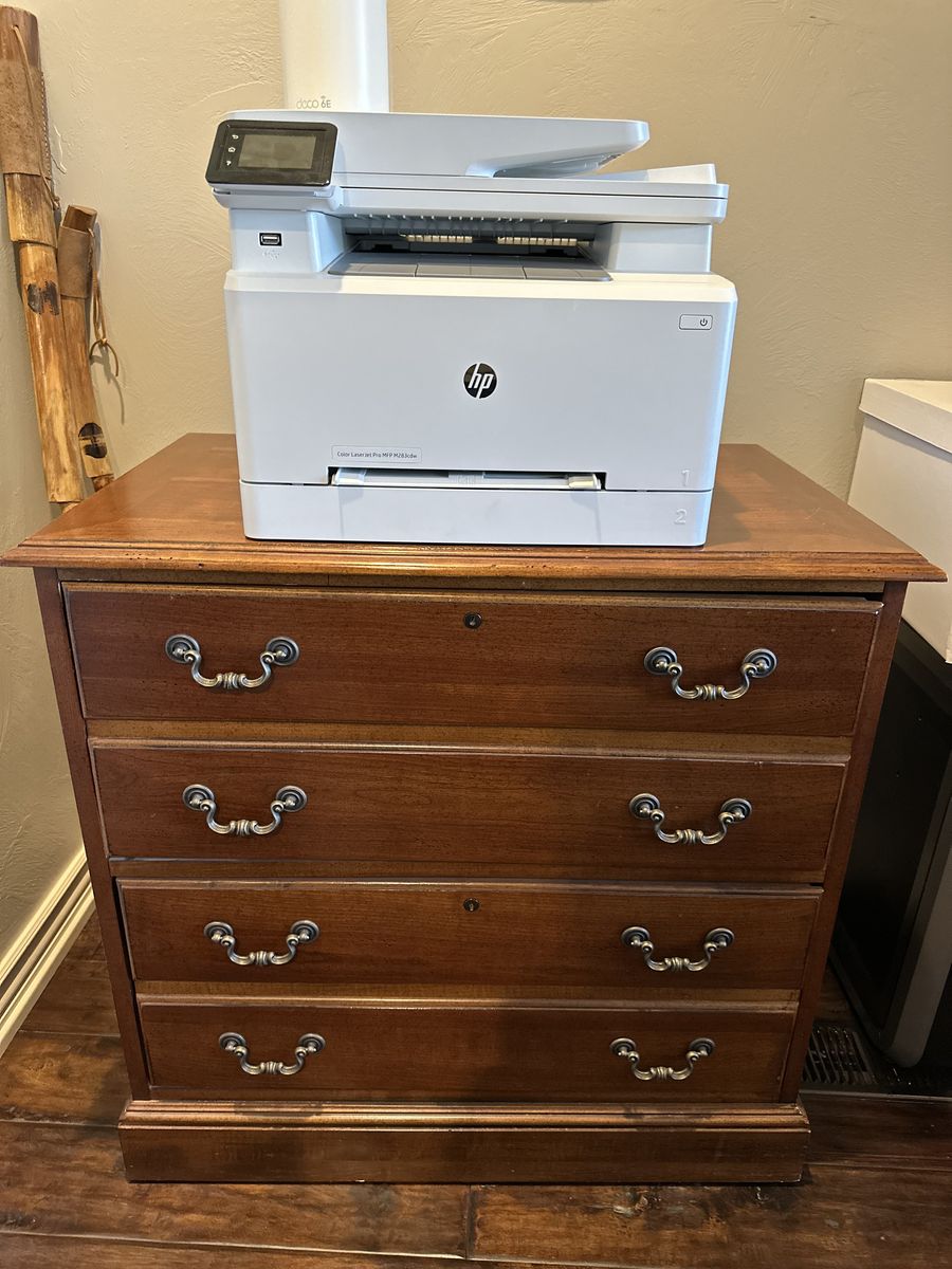 ZelleMAKE OFFER: Good condition, 2 desks with glass tops, 2 book shelves, 2 file cabinets, 1 3-drawer chest. Moving.