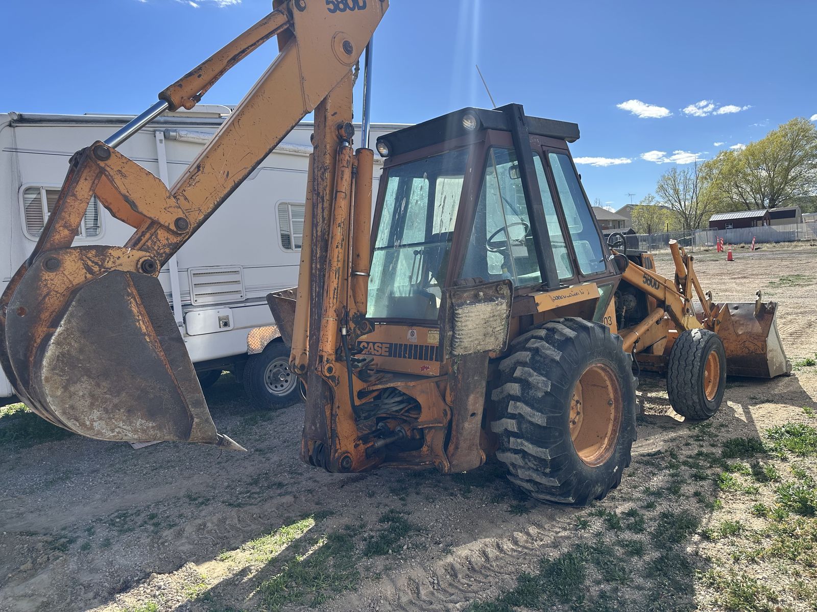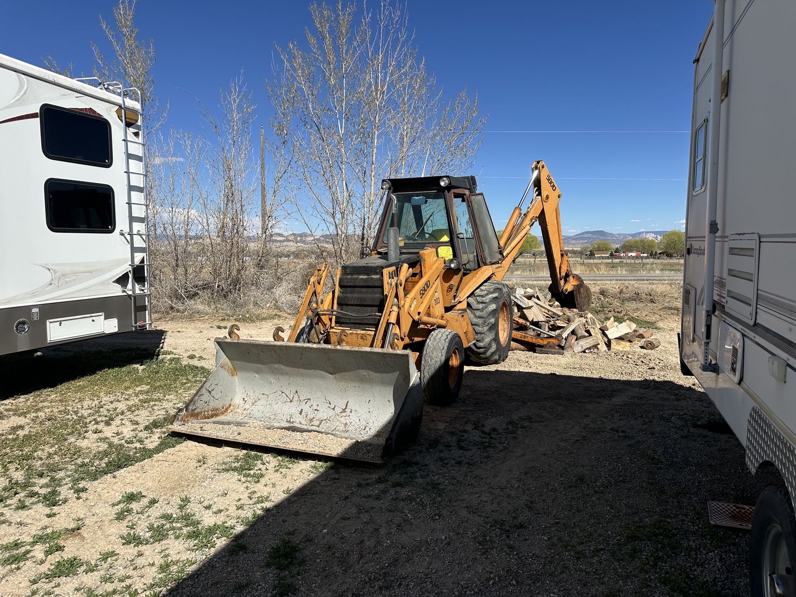 All gauges work* Cleanest Case 580D you will find! Brakes are Excellent! 24” Bucket -GoodTeeth HD cutting edge blade on front bucket Enclosed cab Seat performs excellent -unlike most Strong Transmission Strong Hydraulics Seals&Hoses are good Fluids/Filters done annually. 5723 hrs..This backhoe has the clearest fluids* engine, hydraulics, transmission you’ve ever seen on the 580 Tires hold air year round. This is an excellent Hoe. Price is Firm, don’t really wanna sell