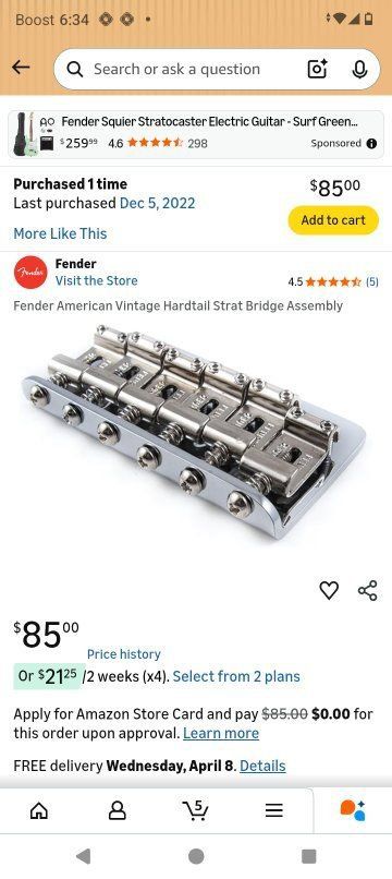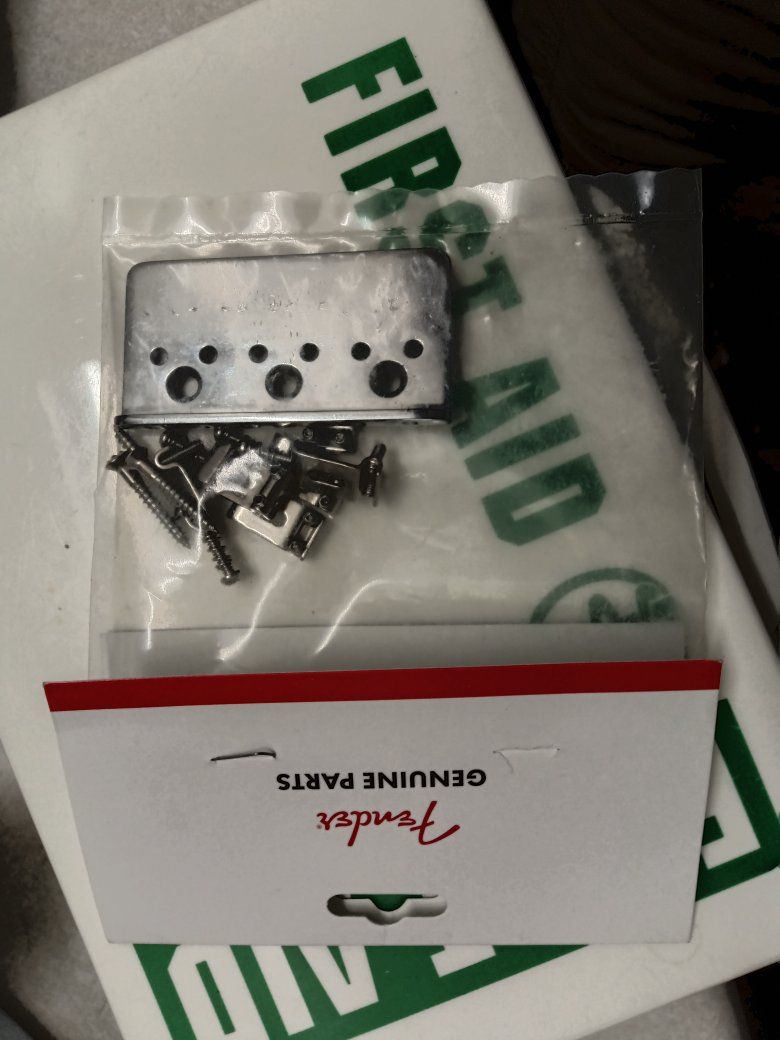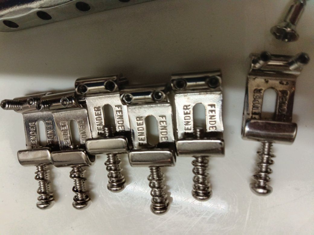 USA Genuine Fender Vintage 2&7/32" string spacing bridge. I bought this bridge for a guitar and ended up only using it as a mock up bridge for a guitar I built it was only strung up for one day it is. Bridge is brand new! This is the most expensive hardtail bridge Fender Sells it's what they use on the USA and custom shop Fender Stratocasters Less than half price $40