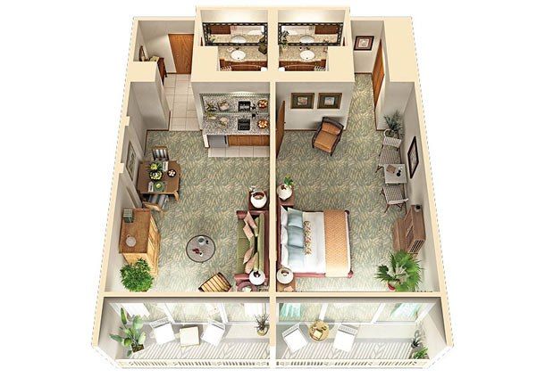 This Villa features 2 full bathrooms and 2 balconies. The 1 bedroom has a door so that it can sleep 2 privately in the Master and 2 in the pull out sofa in the living room. You can also request a twin rollaway for a 5th person. There is a chaise lounge in the Master as well if you need space for a younger child.