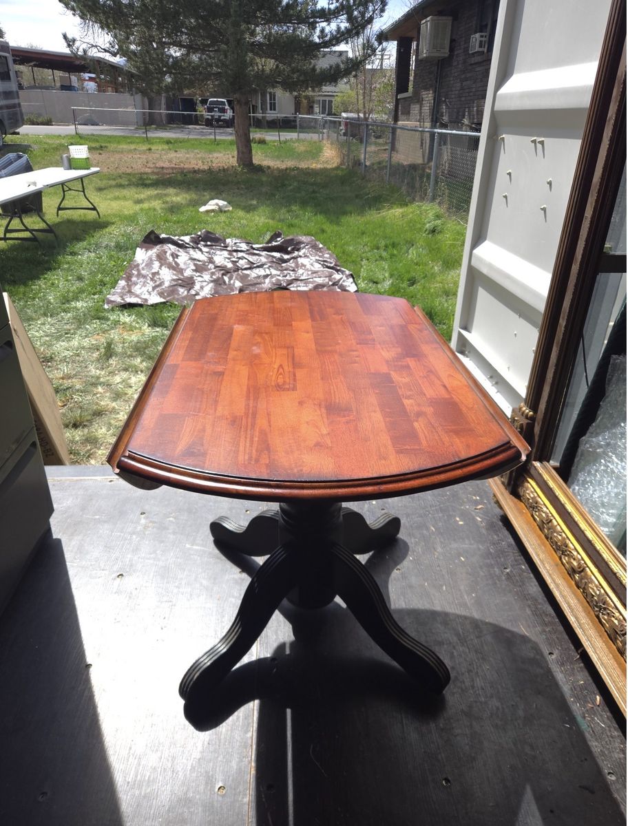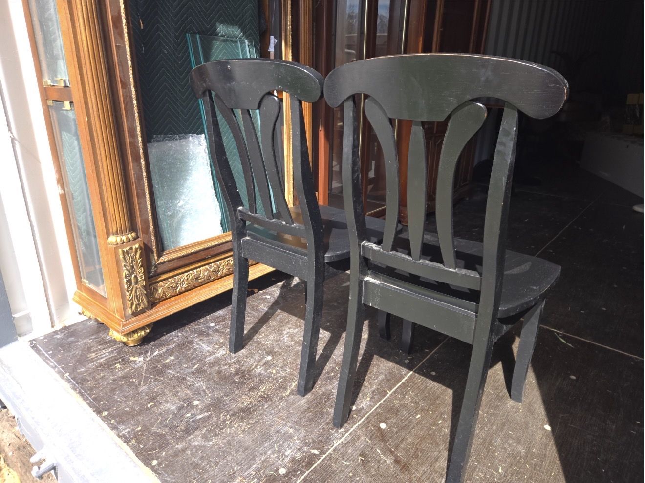 VenmoLovely wood grain topped drop leaf table. Has black pedestal base and 4 black wooden chairs. Modern yet traditional fits in any decor. It’s in wonderful condition in a size to fit most spaces.