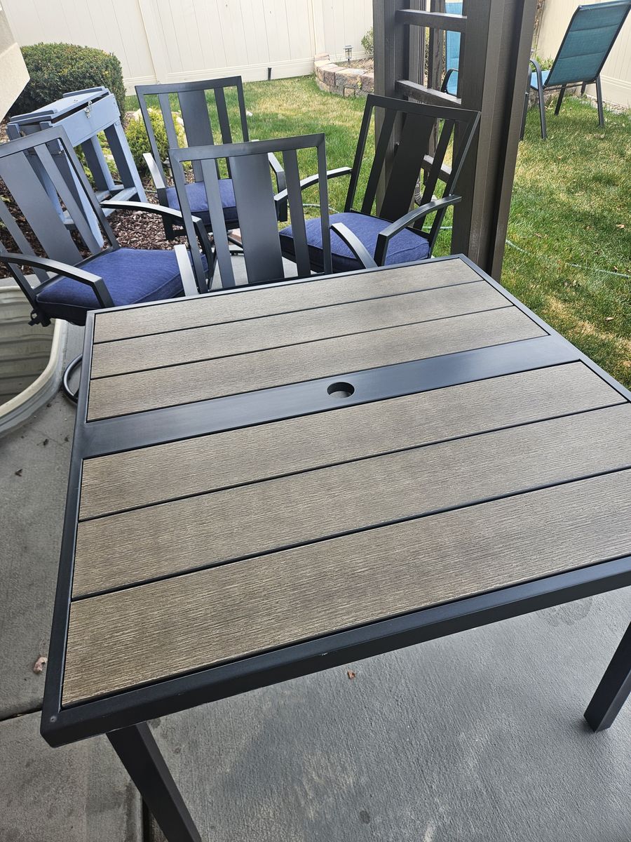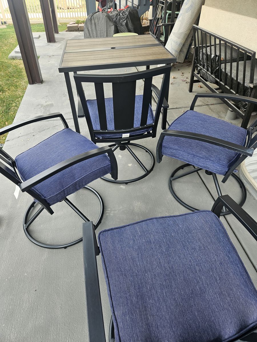 VenmoMetal patio table...40 X 40 inches. 4 metal swivel chairs with cushions. Only 1 year old. Like new.