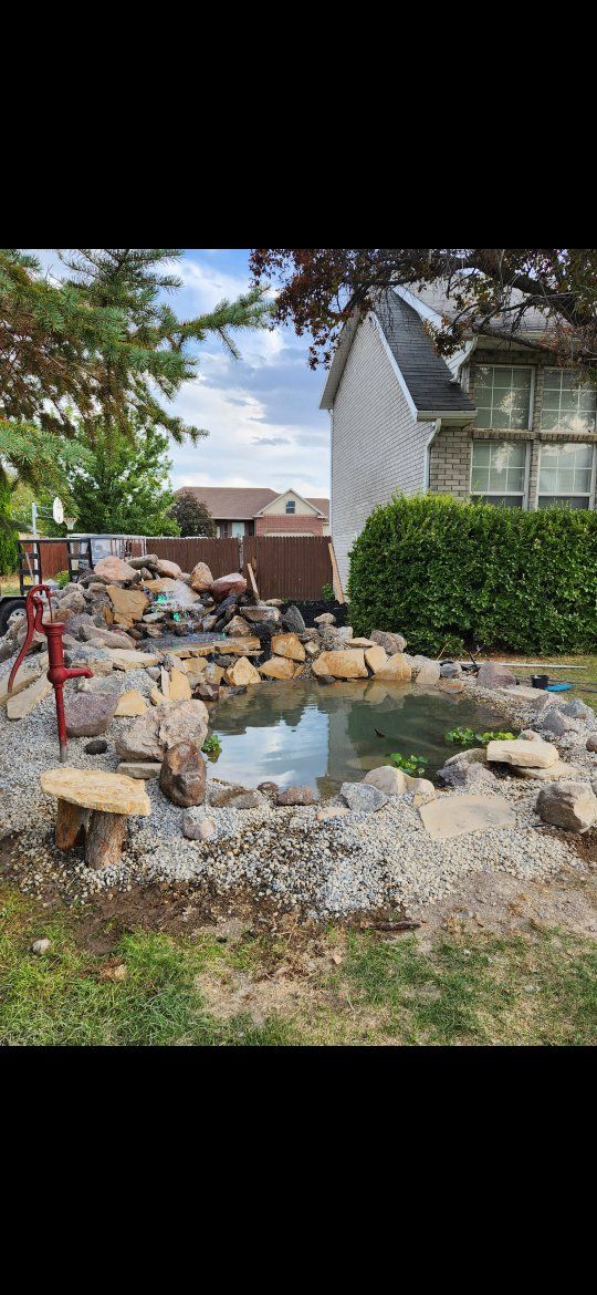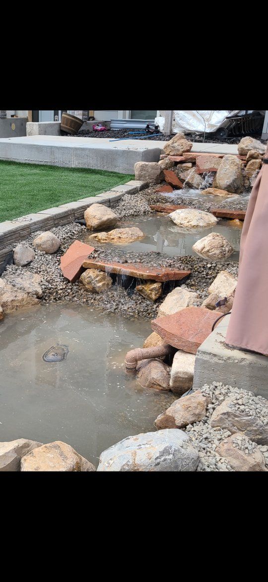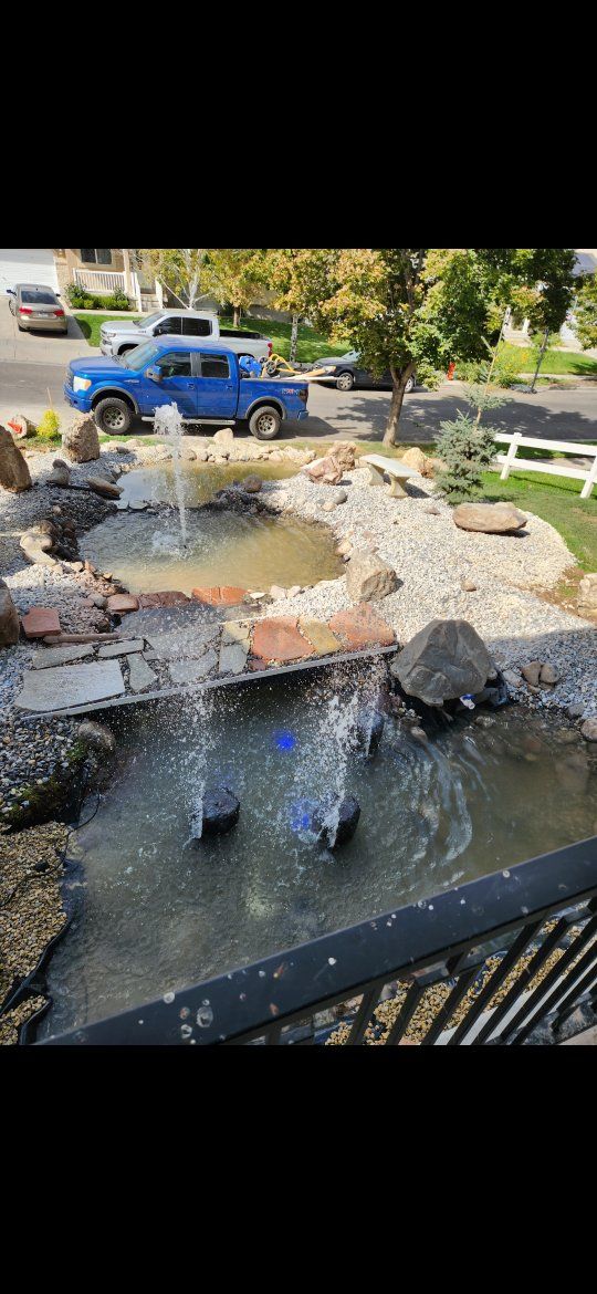 outdoor water features koi ponds pondless rivers and more. water features are my passion. I try my best to keep them affordable for you give me a call and let's work one into your budget!