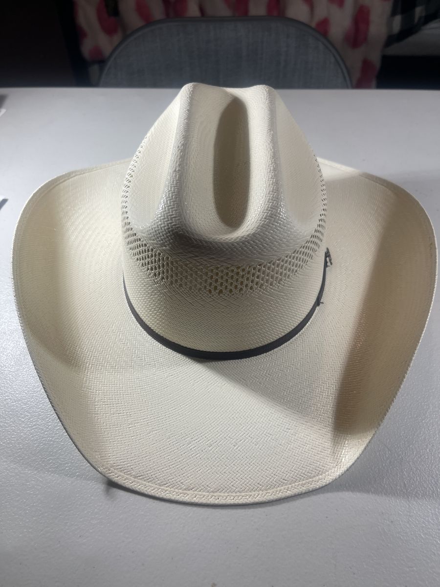 ZelleCattleman Natural Straw Hat size 7 1/2 in the box still. Worn once for a wedding party. Paid $145.