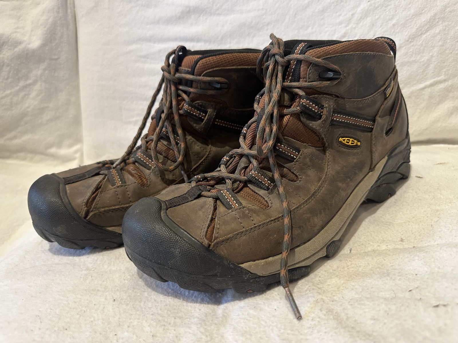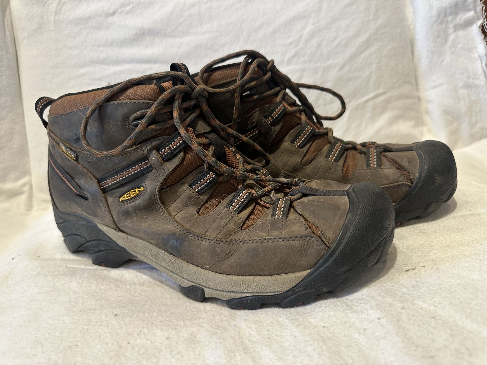 Keen men’s size 12 or EU 46 brown with copper trim, leather and textile waterproof mid hiking boots. These are an excellent condition, see photos for details. I take cash or Venmo, but cash is preferred. Text is best. 801-201-4446. Check out my other ads for additional sizes and styles.
