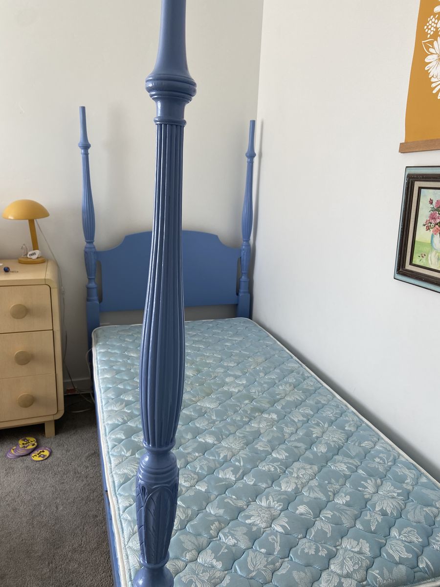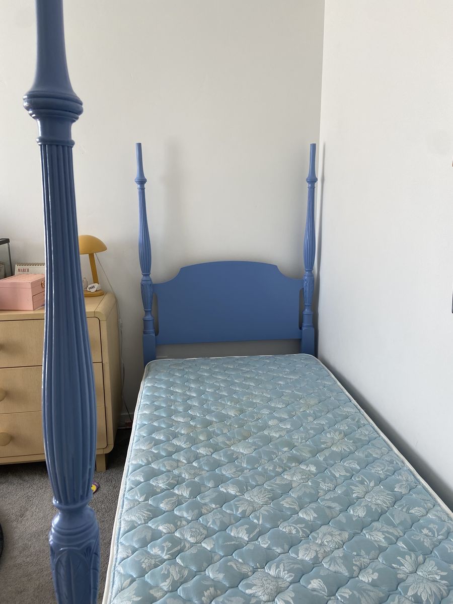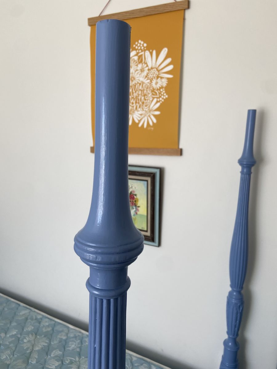 VenmoTwo vintage four poster beds painted SW Lobelia in a beautiful enamel finish. I have enough of the paint for any touch ups you’d like to do although I did just give them both a good tidy up.