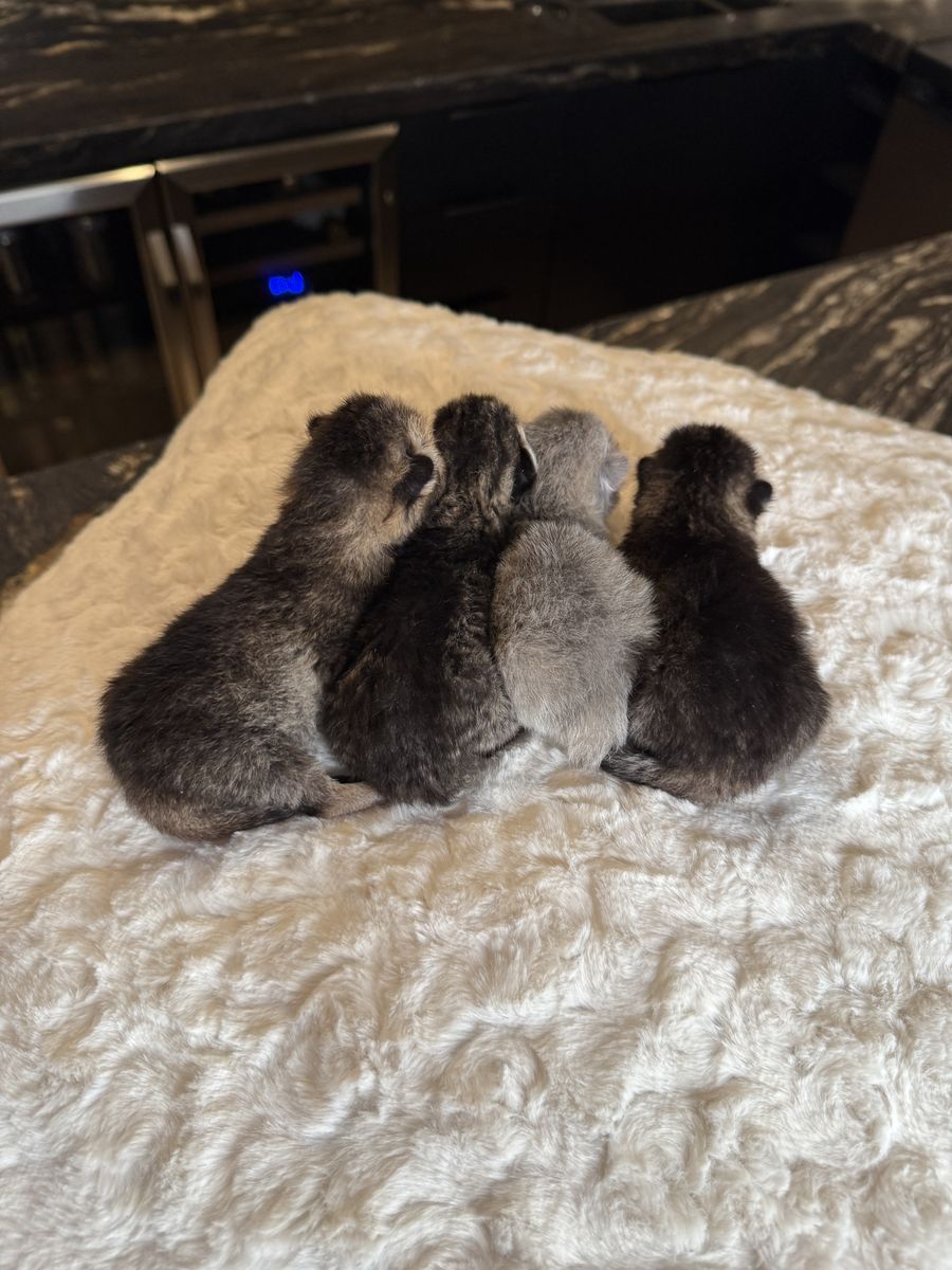 2 Males 2 Female Purebred Scottish Straight Longhair female, Winnie (green eyes), and our purebred Scottish Straight Shorthair male (WCF registered, proven).This pairing combines exceptional temperament, rare coat lines, and diverse color genetics. About the Father Purebred Scottish Straight (chatgpt://generic-entity?number=0) (WCF Registered) • Proven stud with multiple healthy litters • Extremely affectionate and deeply bonded • Slightly shy at first but warms up quickly • Produces consistently cuddly, people-oriented kittens He has produced: • Black shaded goldens • Silver shaded • Silver tabby • Golden brown shaded/tabby • Potential for blue kittens with compatible genetics His kittens are known for being exceptionally affectionate regardless of the mother. About the Mother – Winnie Scottish Straight Longhair (chatgpt://generic-entity?number=1) (Fold Line Carrier) Winnie is truly the most affectionate cat we’ve ever owned. Everyone who meets her — even people who “aren’t cat people” — falls in love and wants to take her home. • Rare long, luxurious coat • Beautiful green eyes • Extremely cuddly and bonded • Vocal and talks back when you speak to her • Loves constant companionship She comes from strong fold and straight lineage. Her mother has folded ears, and previous litters in her line have produced a high percentage of folds. Her lines have produced: • Silver • White with blue eyes • Various shaded and tabby combinations What This Pairing May Produce Because both parents come from Scottish Fold lines (while both are straight-eared), this litter may include: • Scottish Fold (chatgpt://generic-entity?number=2) kittens • Scottish Straight (chatgpt://generic-entity?number=3) kittens • Longhair and shorthair variations • Silver, golden, shaded, tabby, and possibly blue tones Pick order will determine selection. While we can discuss preferences, we cannot guarantee color, coat length, or ear type. Pricing & Reservation Details • $2,200 per kitten • We prioritize loving, indoor homes and well-matched placements.