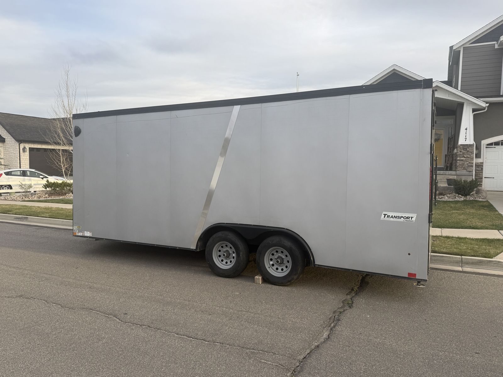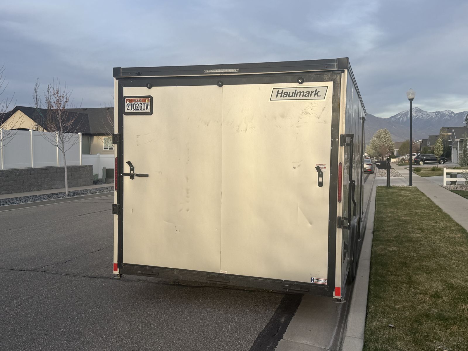 2020 Hallmark American Cargo enclosed trailer for sale. This is an 8.5’ x 20’ trailer with a V-nose and has been set up for camping with several upgrades. It has been primarily used to haul 4-wheelers and for camping trips. Only selling because I am looking to move into a larger trailer.