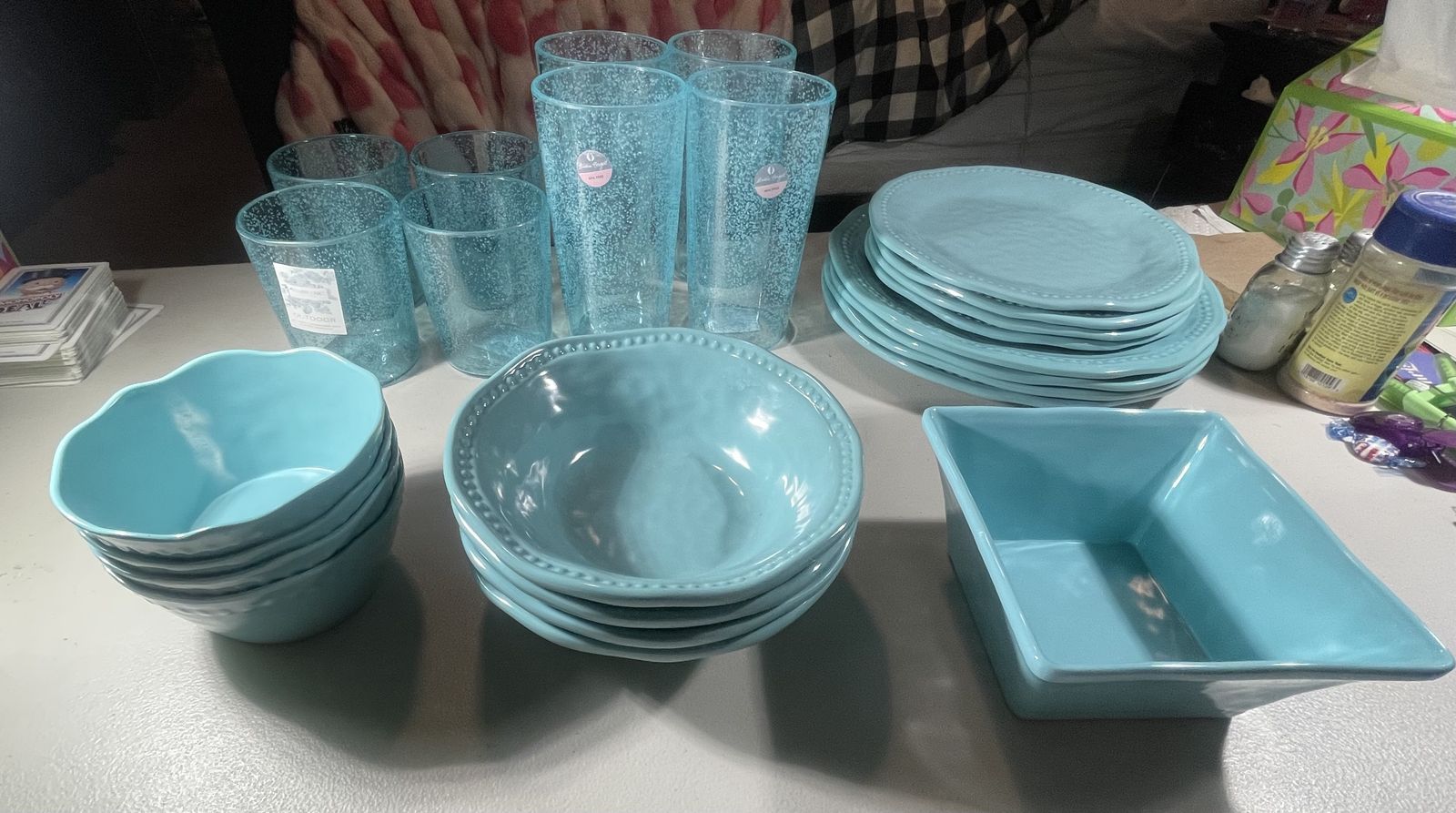 Zelle100% Маfamine جير Tommy Bahama 17 piece dish set plus 4 Tumblers and 4 juice in BPA free plastic
