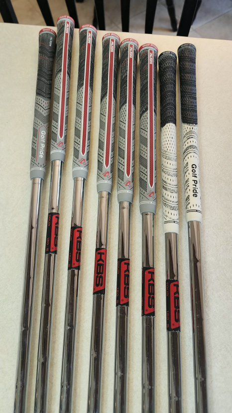 2019 P790 Irons 4-AW/GW KBS Tour 120 Stiff Shafts Golf pride mcc +4 mid-size grips on 4-9 new last year. Standard size mcc grips on PW and AW. 4 and 7 Irons have some nicks in them (shown in pics)