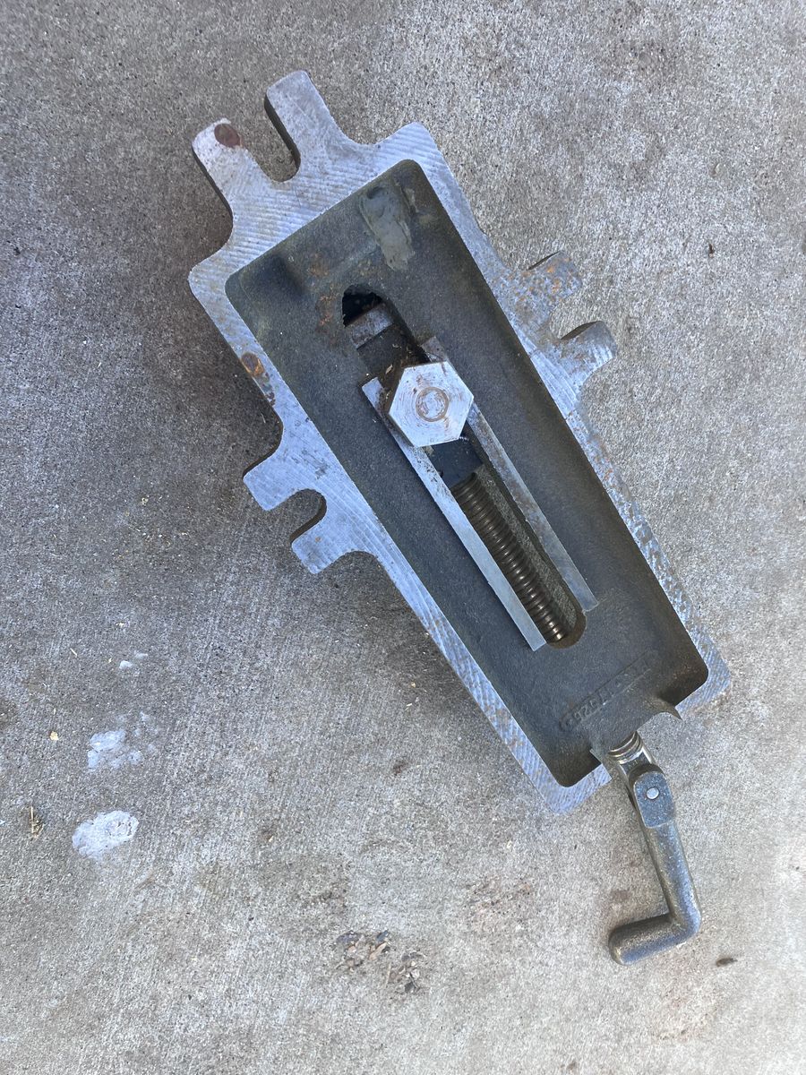 PayPalA vintage Simplex machinist vise, often used for holding workpieces securely on a drill press or milling machine. Brand: Simplex Type: Drill press or machine vise Material: Heavy cast iron construction Features: Integrated clamping lugs for fastening to a machine table