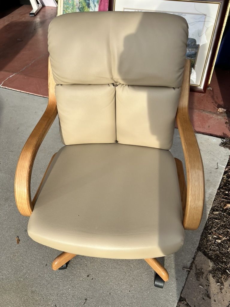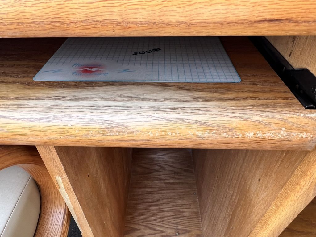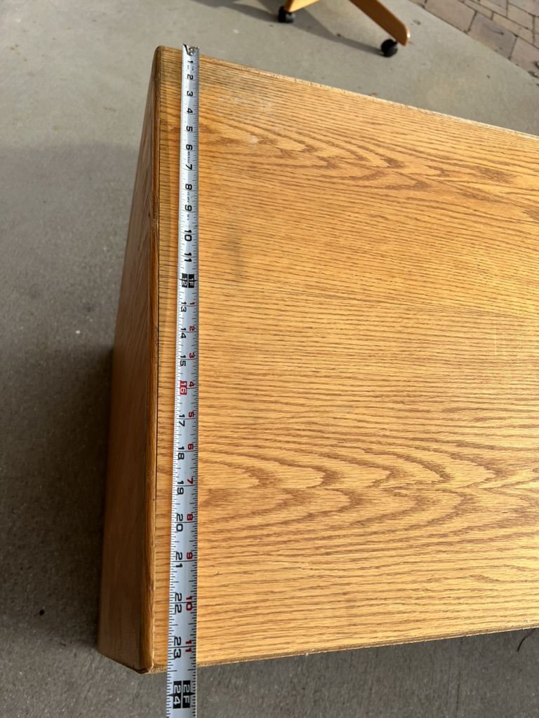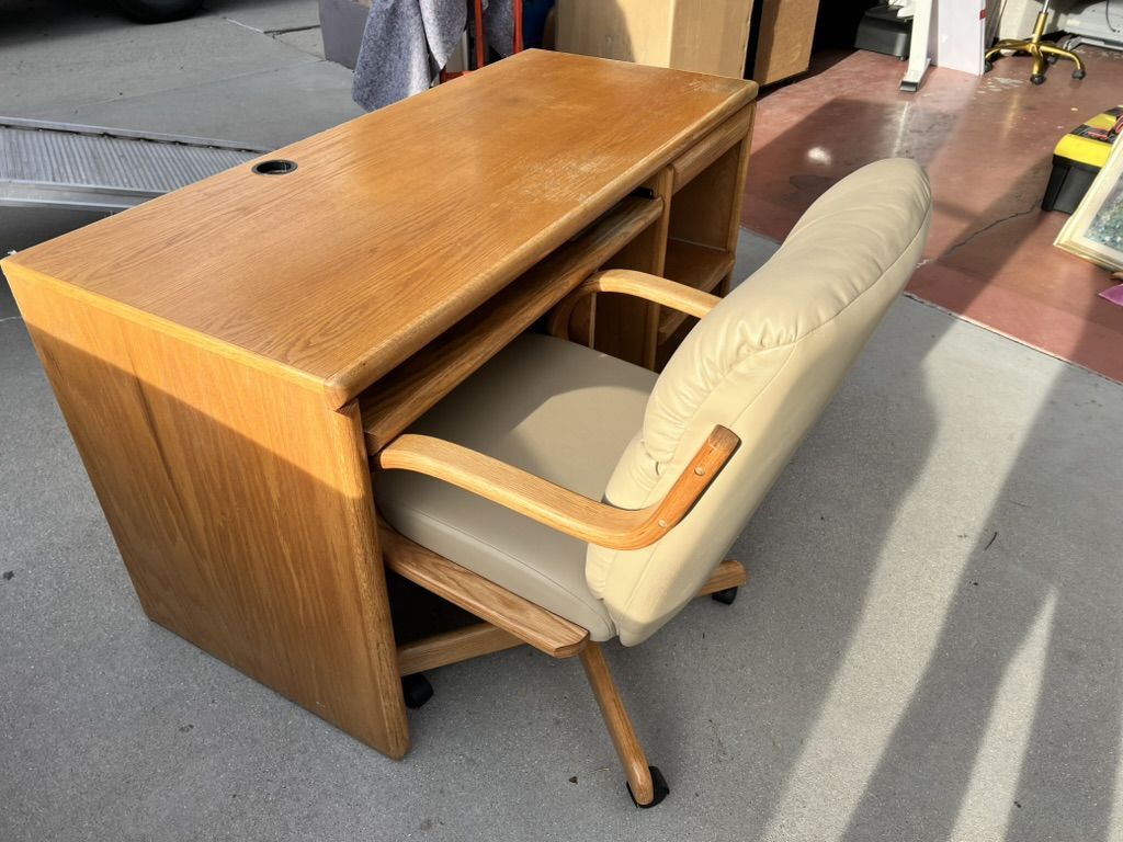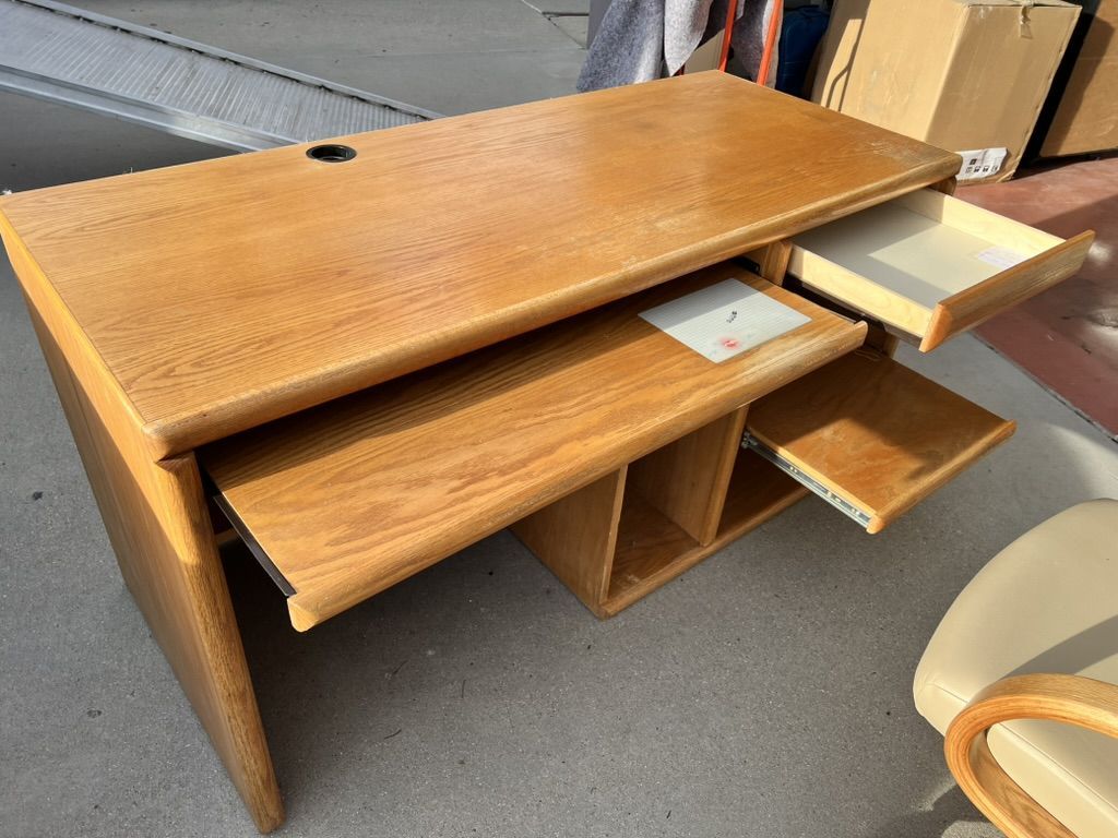 ApplePayWooden desk, appears to be solid wood through most of it. Not sure if oak or maple? Could use a new coat of varnish or paint, but perfectly useable as is. Comes with matching chair if you want it.