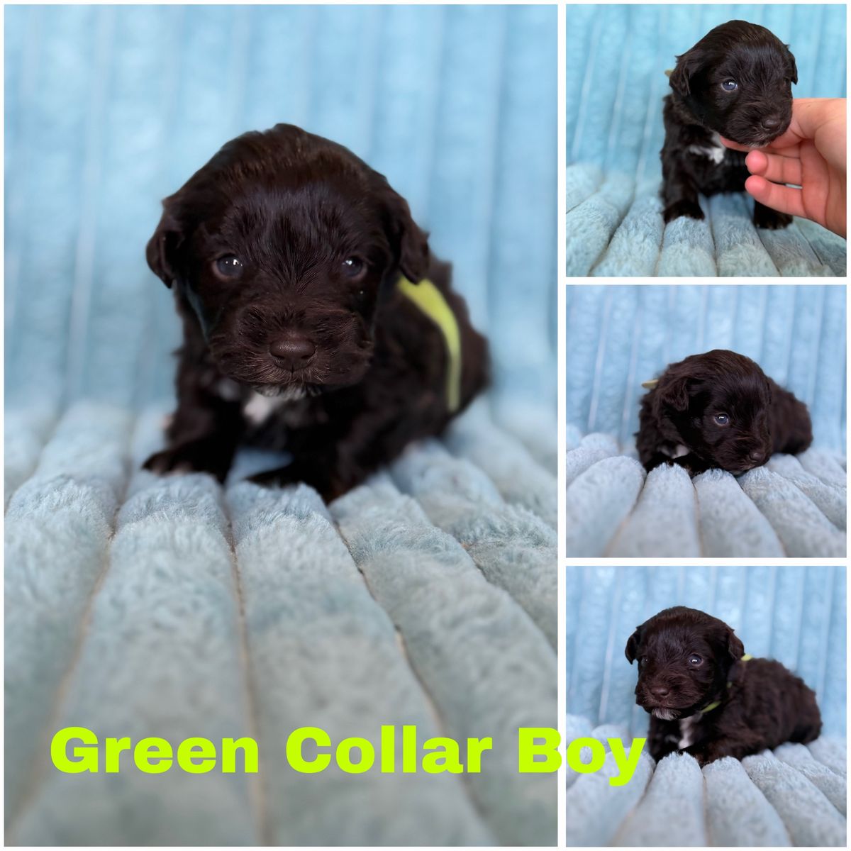 Green collar- Green collar is very people oriented. He always has to climb in your lap when you sit next to him and absolutely loves to cuddle and loves to be pet.