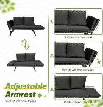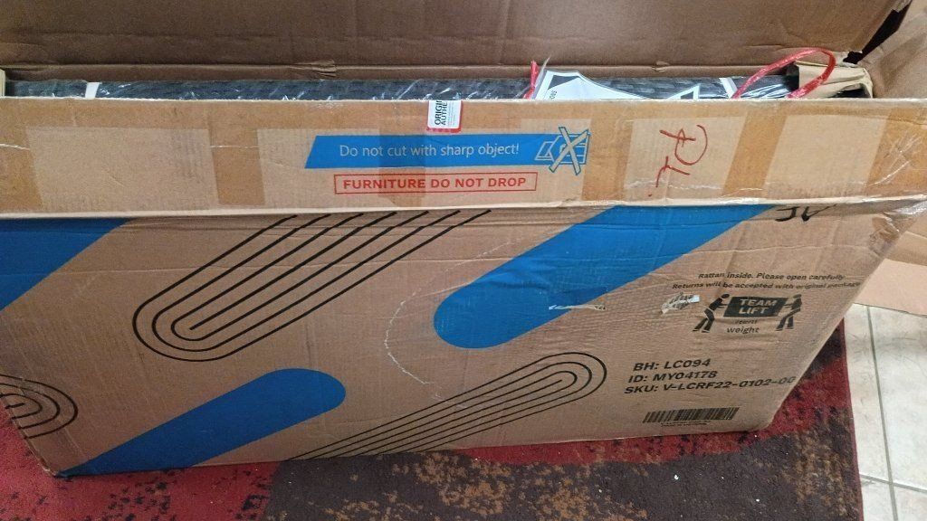 New in box Vineego 0102 70-in W x 32-in H Black Wicker Steel Love seat Bench