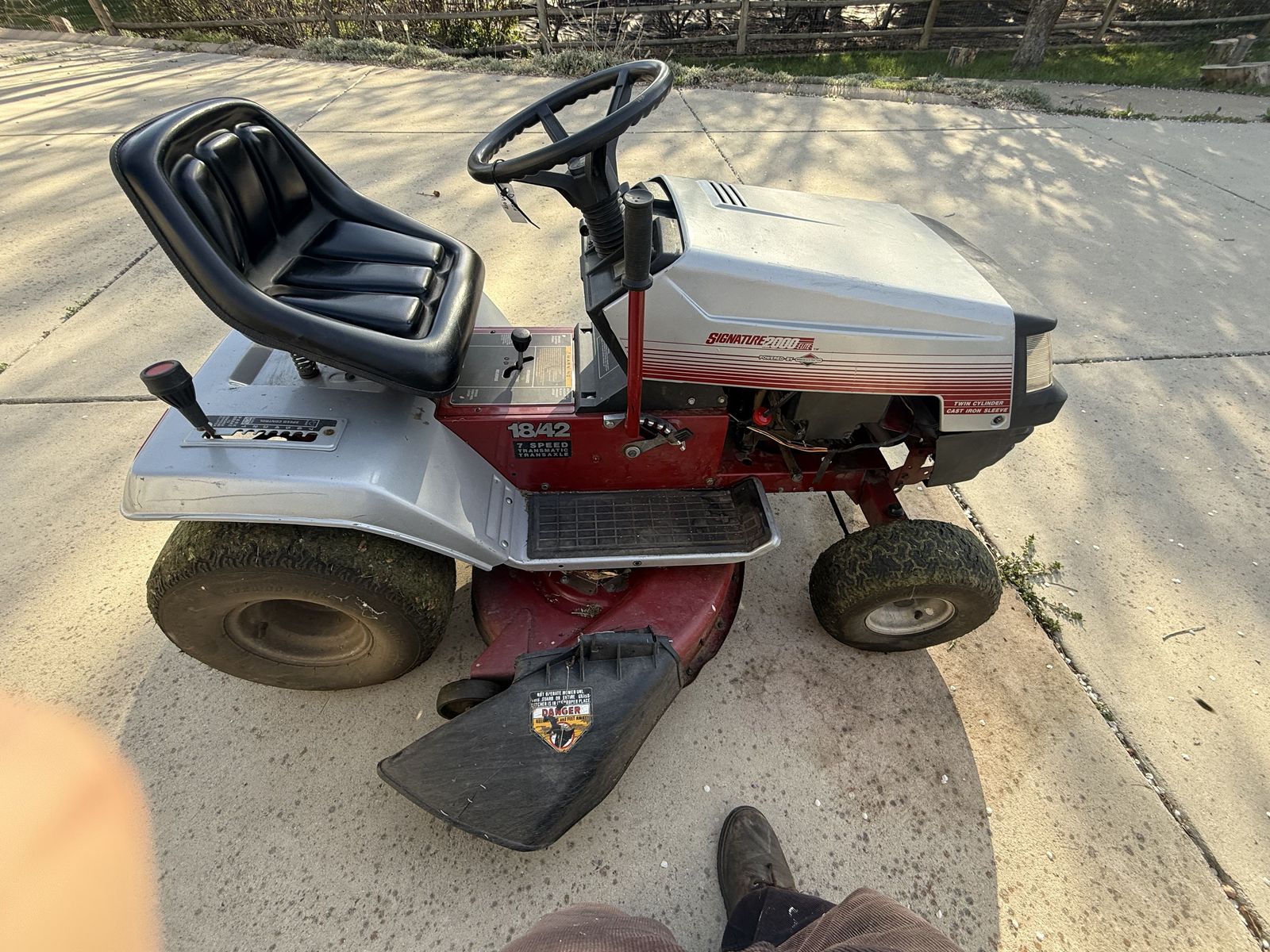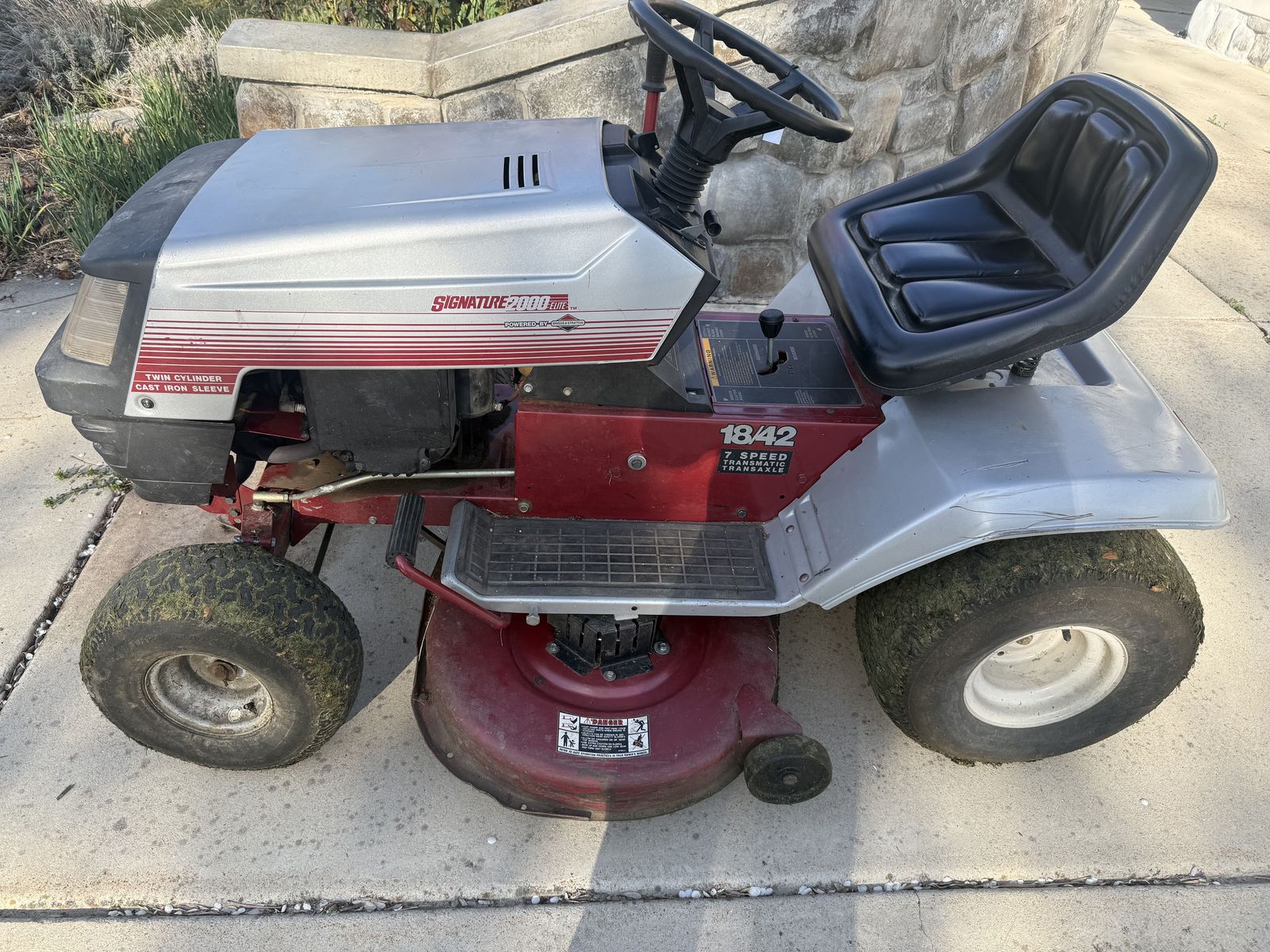 VenmoLawn Tractor 18HP 42", Briggs & Stratton 422700‑series is a 694cc (42.3 cu‑in) air‑cooled, 4‑stroke, L‑head opposed‑twin vertical‑shaft engine producing about 18 HP at 3600 rpm with roughly 28 ft‑lb of torque at 2600 rpm. The engine features a cast‑iron cylinder sleeve, mechanical governor, 12‑volt electric start, and a flywheel‑magneto ignition. With an L‑head valve layout making it a simple, durable, easy‑to‑service workhorse commonly found in older riding mowers and garden tractors. Needs a carburetor rebuild. Engine strong and still runs. $60 OBO. A new, recently purchased battery is available for an EXTRA $60. Needs someone who has the time and skill to retune the carburetor.