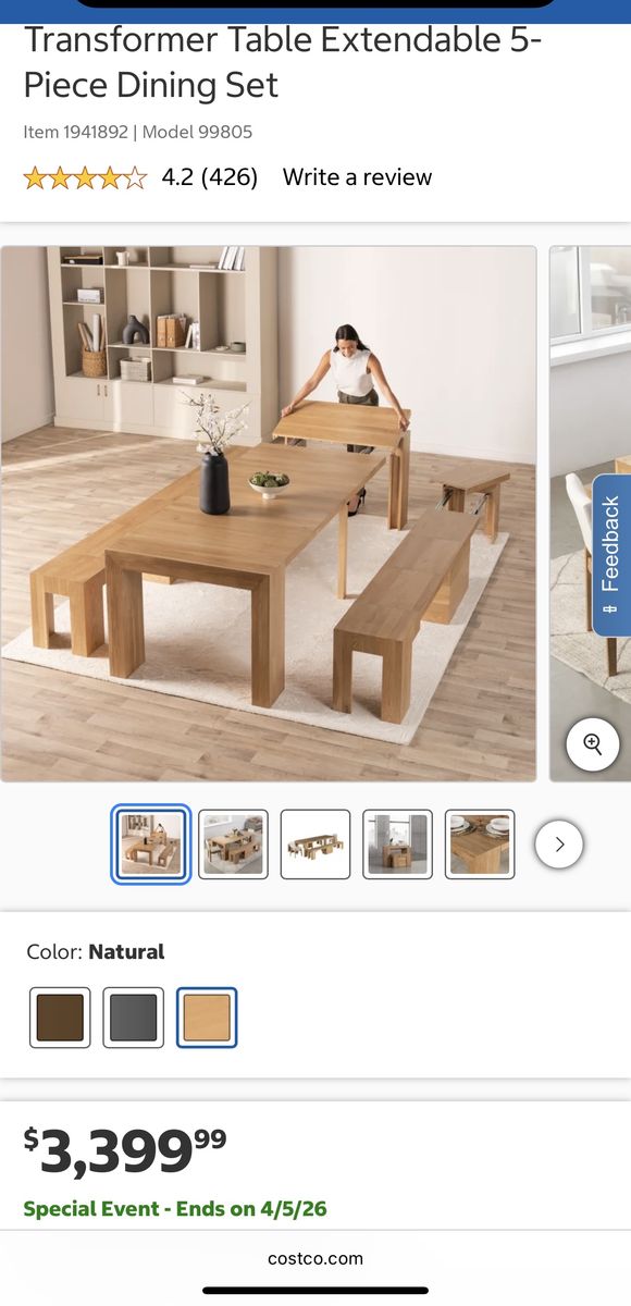 I am selling a brand new Transformer Extendable Dining Table with Chair Set!