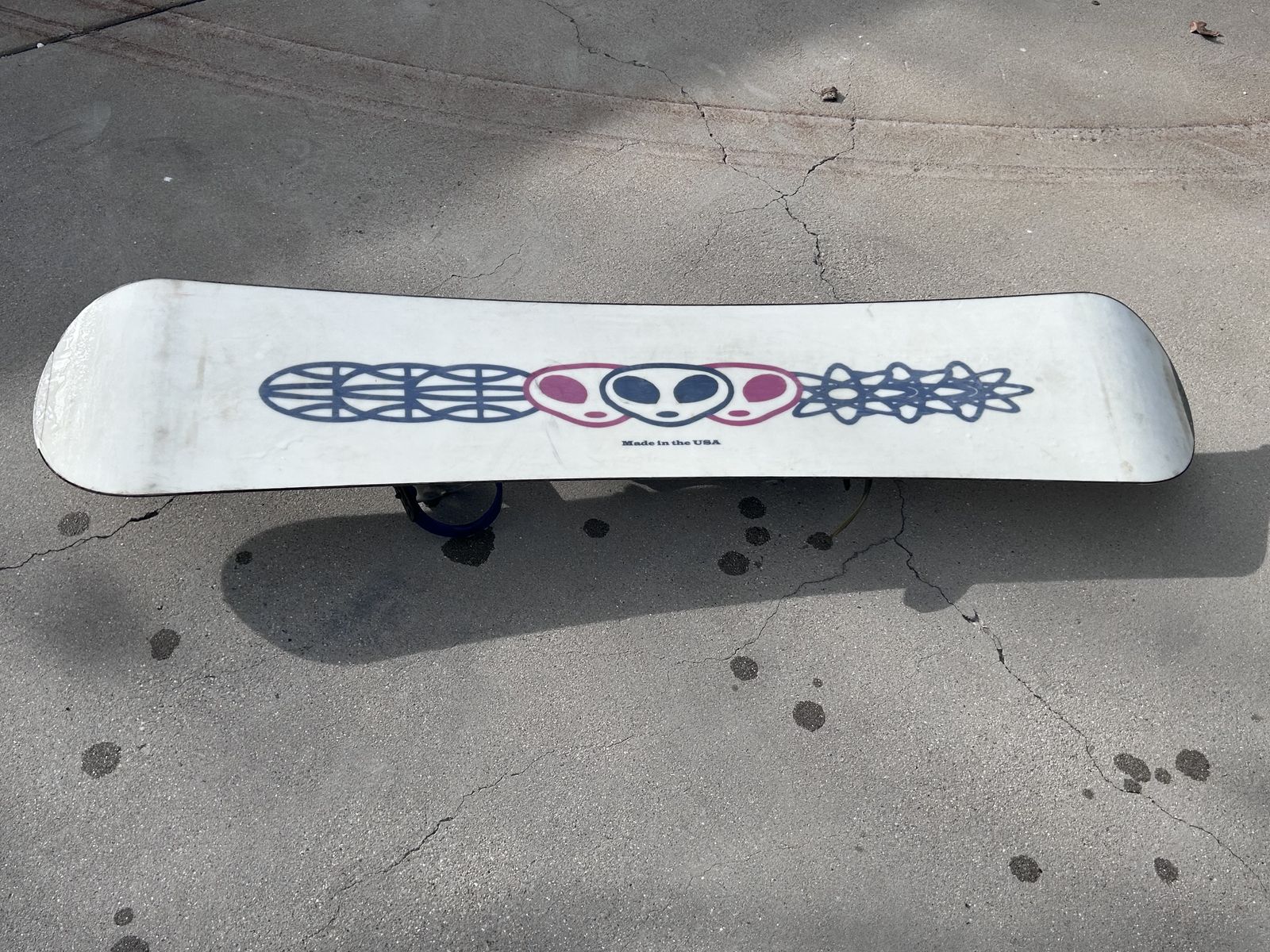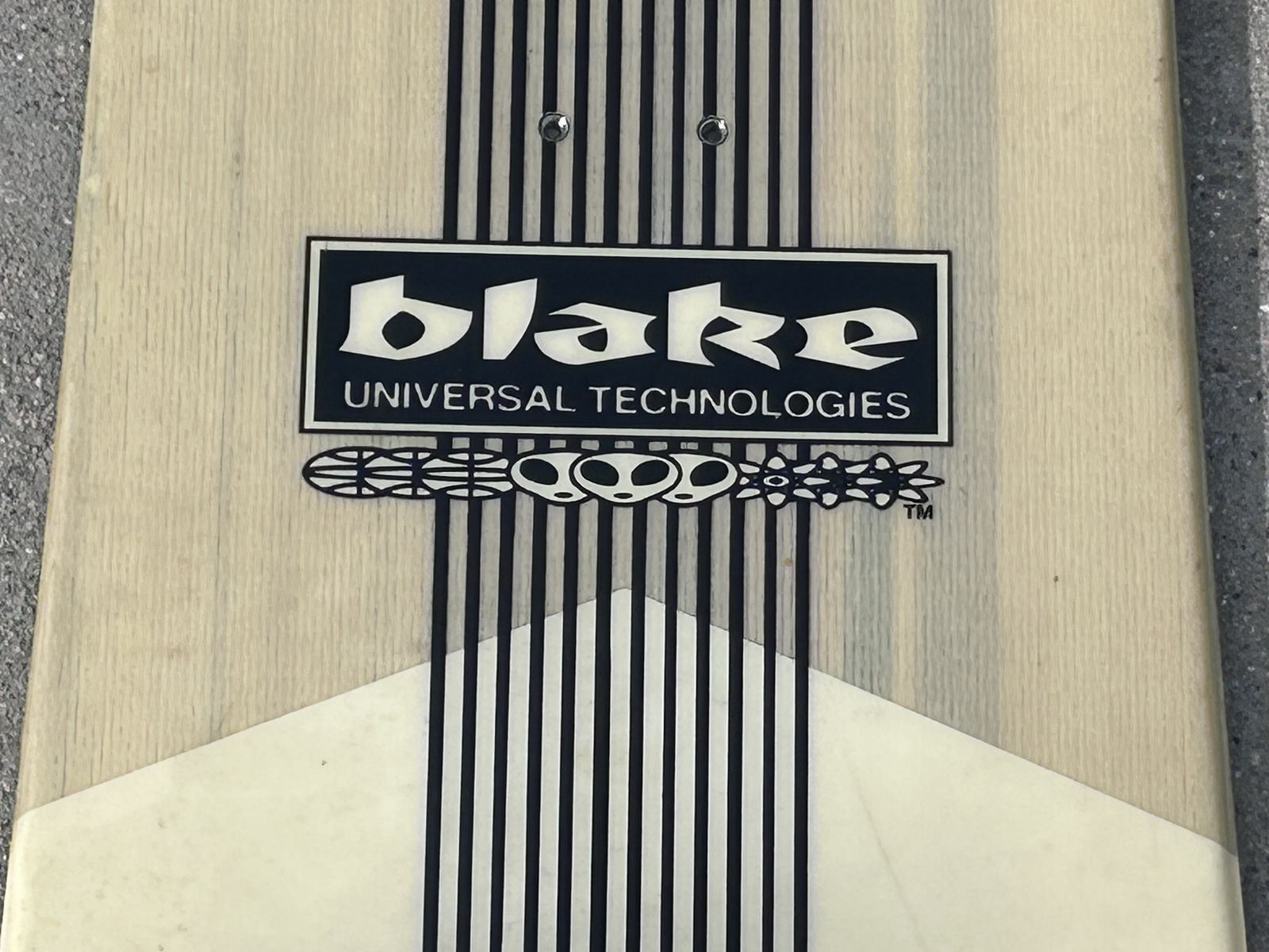 Vintage 90s Blake Universal Technologies Snowboard w/ Bindings – Retro USA Made. Great retro piece, wall art, collector item, or usable cruiser board. Good overall condition for age with graphics present. Perfect for cabin decor or vintage snowboard collection. Always stored indoors. Call or text Dylan 801-897-4263