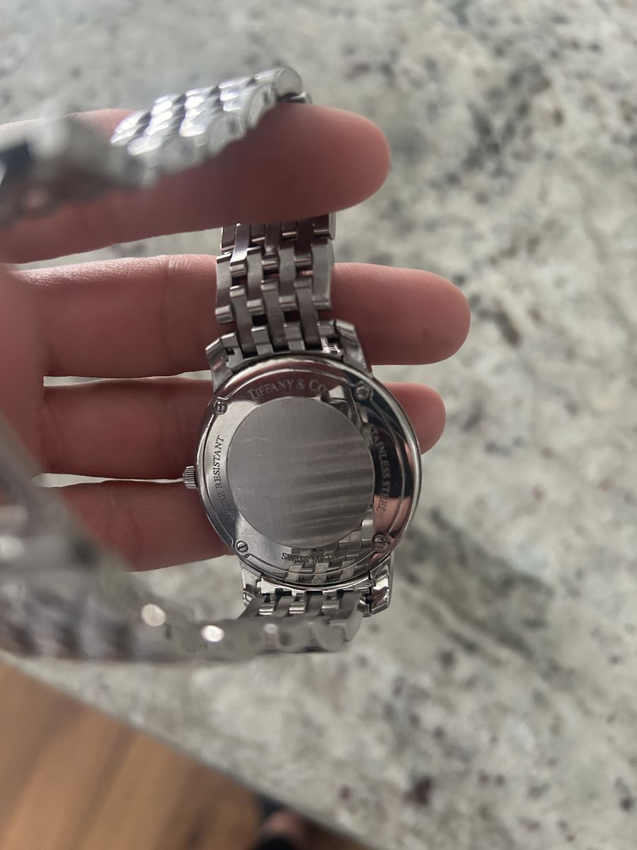 VenmoTIFFANY & CO - SILVER STAINLESS STEEL SWISS MADE WATCH. In very good condition. Had the battery replaced recently. Asking $1,000 or best offer.