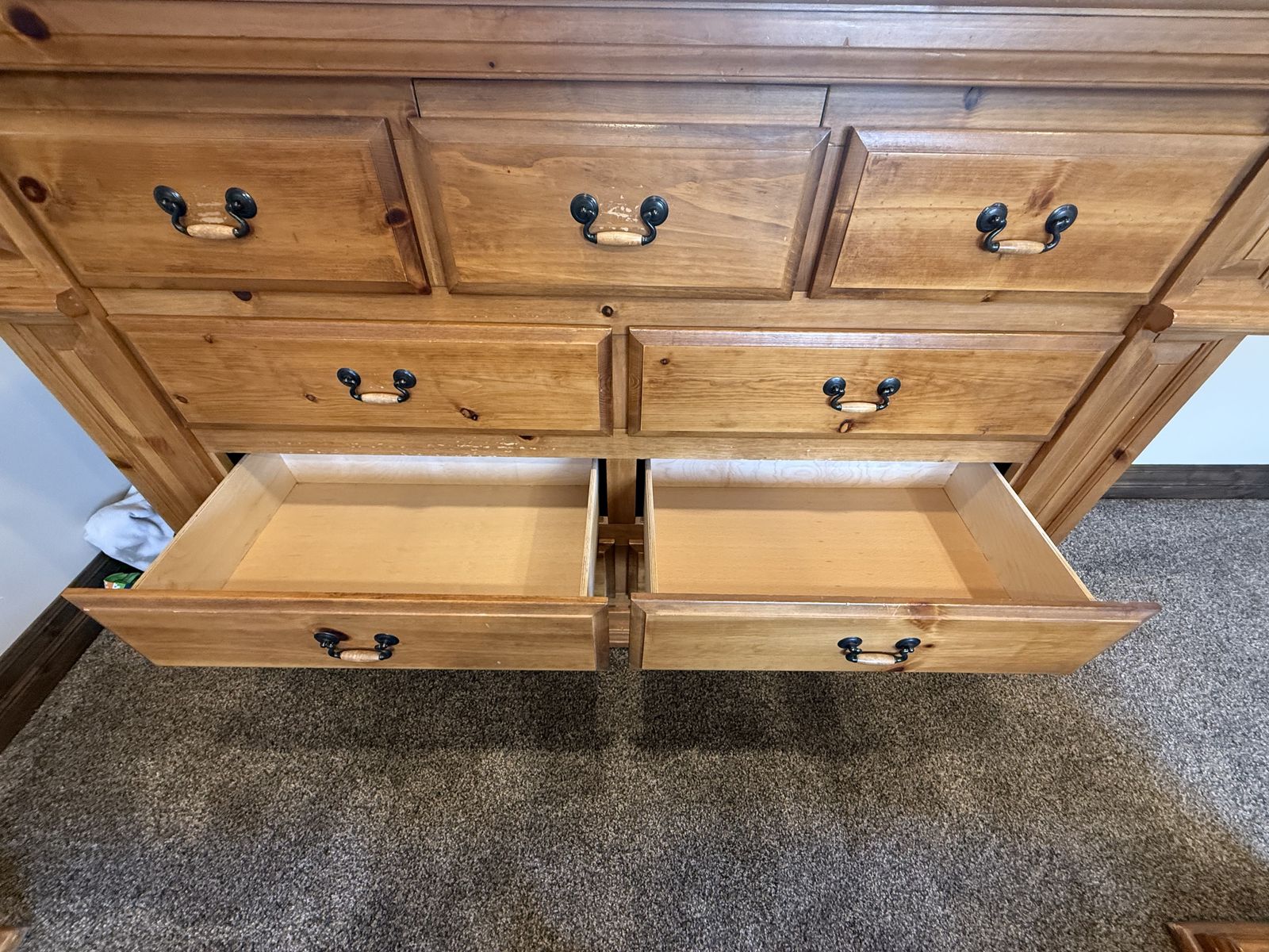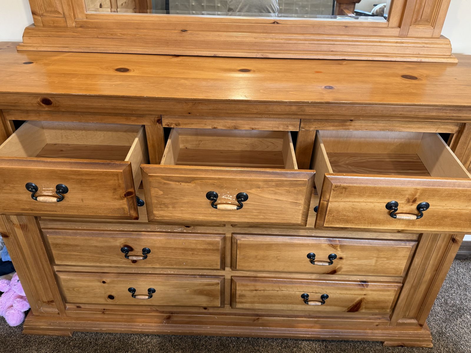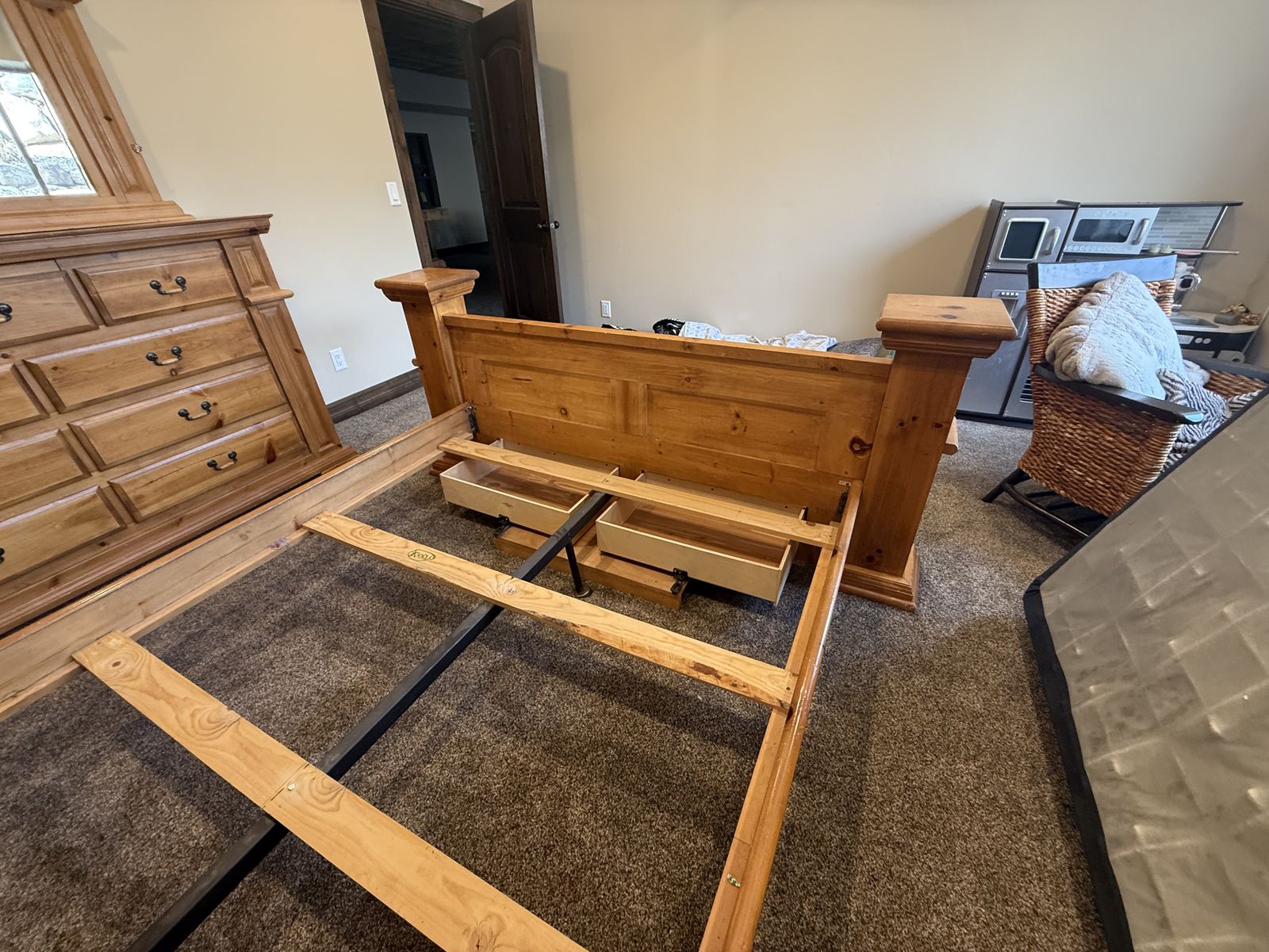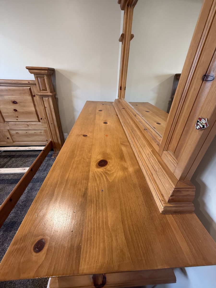 Queen bed Structurally sounds. Has its bruises and blemishes for used furniture but one could do wonders to make like new fairly easy.