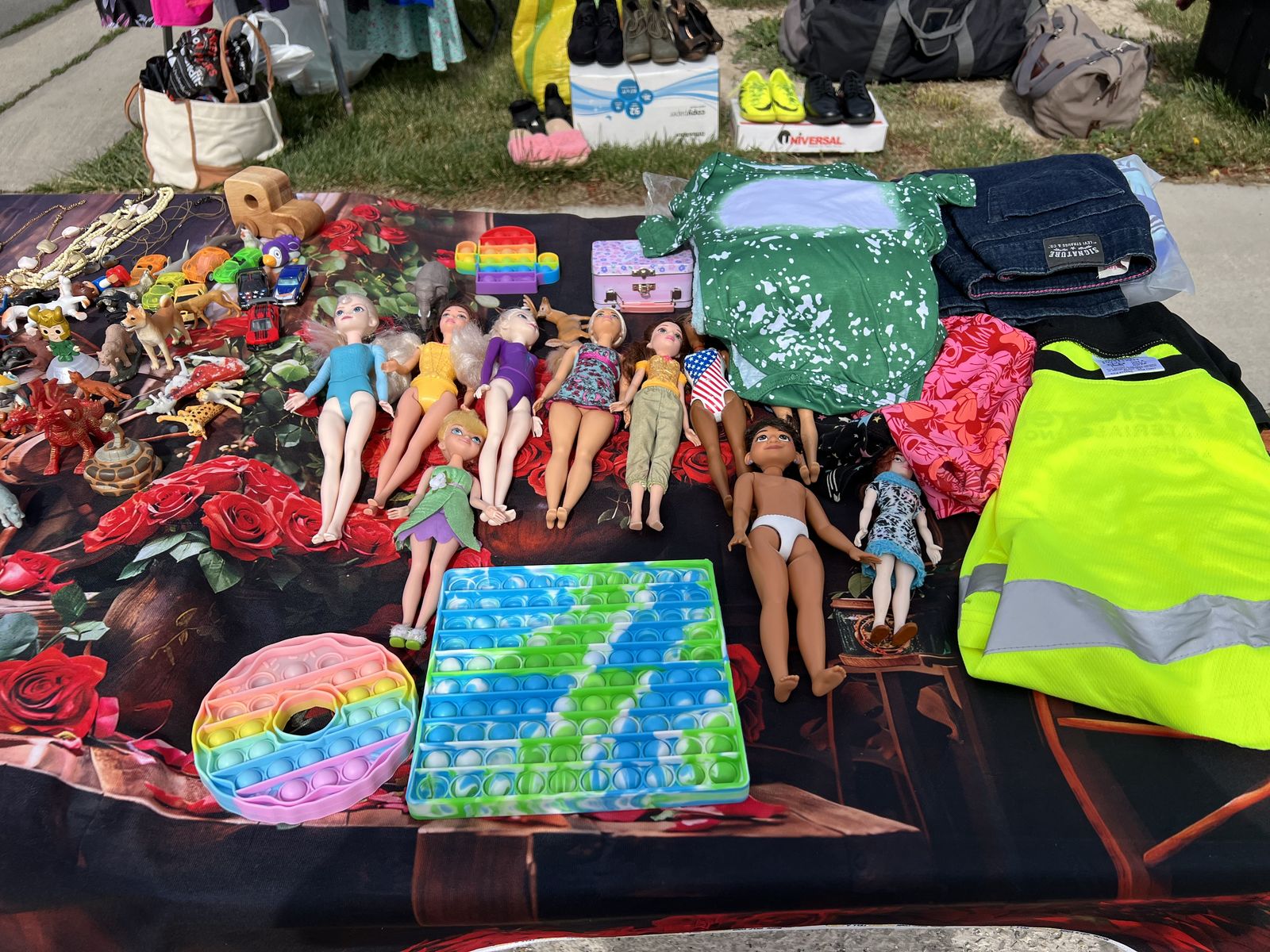 WE HAVE A LOTS OF NEW WOMAN, MAN, AND KIDS CLOTHING, WOMAN'S PURSES. SHOES, HOUSEHOLD ITEMS, TOYS, SUMMER HATS, GIRLS BED COVER , DOLLS, WORKING DVD PLAYER, MOVIES, NICE AND NEW KING SIZE BET COVER,PERFUME FOR WOMAN, NETTED DOILIES AND MUCH MORE. IF YOU LIKE JEWELRY THIS IS THE PERFECT YARD SALE FOR YOU. COME ON OVER AND SEE WHAT WE HAVE FOR YOU.
