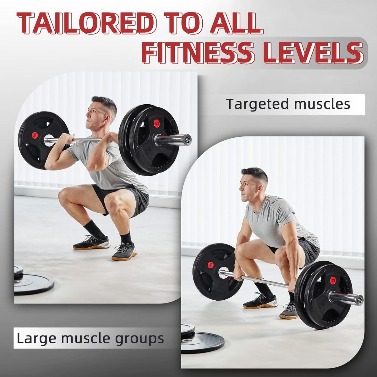 All plates feature a durable, black virgin rubber finish to prevent the plates from rust, corrosion, and low bounce without any unpleasant odor.