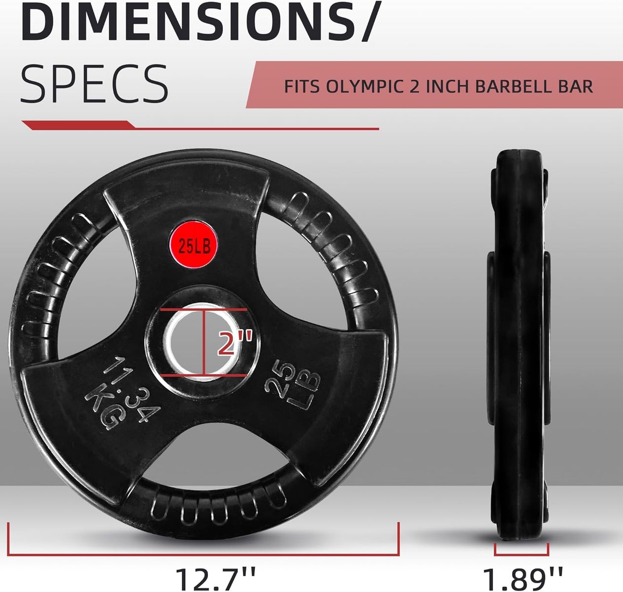 Retailer's Title: Fitvids 2 Inch Olympic Weight Plates, 2x 25 LB Plates for Home Gym Strength Training, Rubber Coate Design