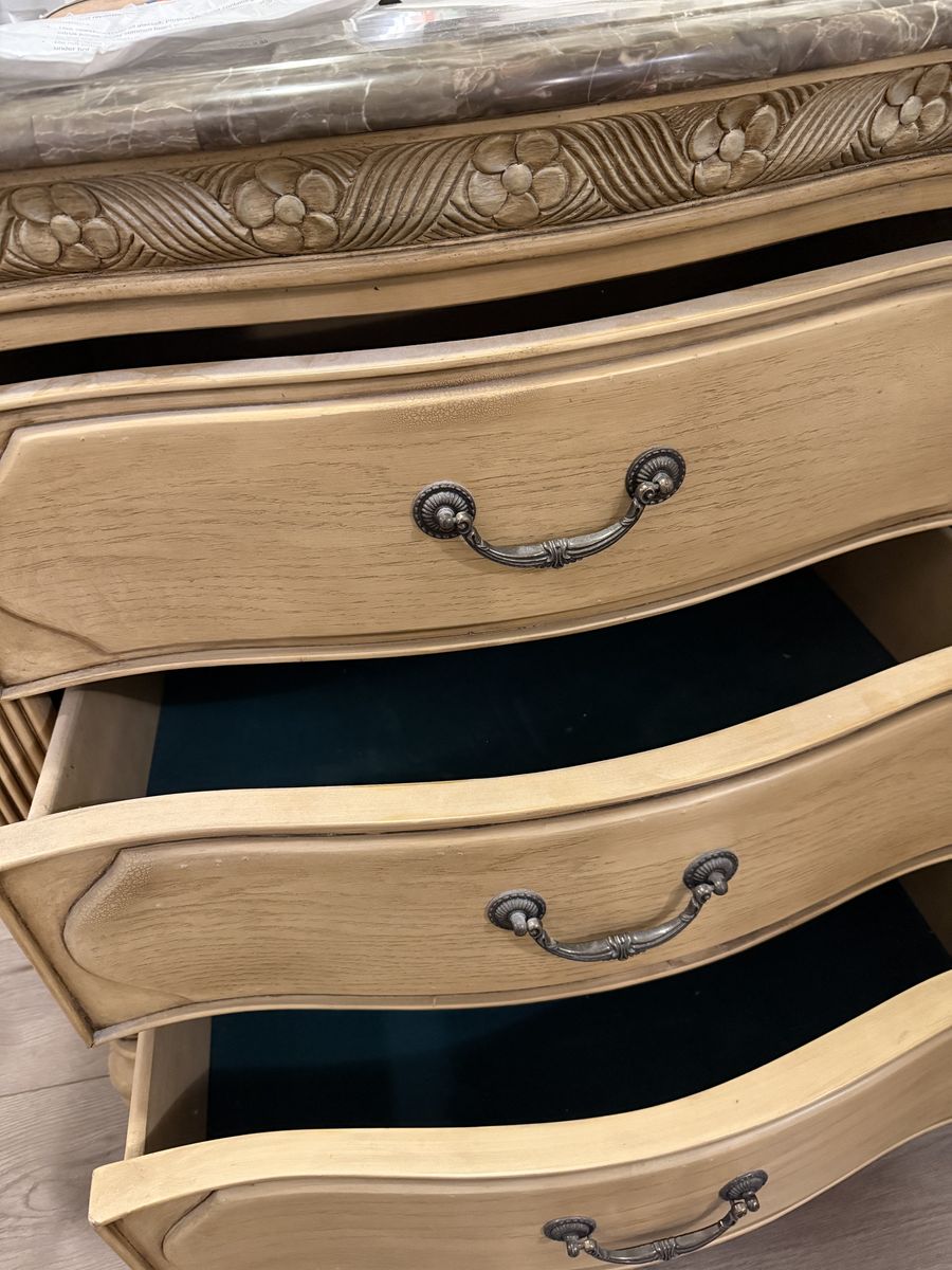 VenmoBeautiful craftsmanship. Two small dressers or nightstands. Velvet lined drawers. Size in photos. Furniture is from the Aico Michael Amini La Francaise bedroom set. Heavy-please bring assistance to pick up. $190 for 2 or $100 each. Located in Sandy. Cash or Venmo. Payment face to face only.
