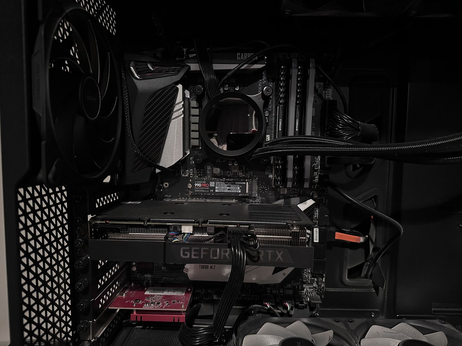 ZelleI9-9900KF with Kraken liquid cooler 16gb RAM 2tb Samsuns 990 pro SSD Nvidia RTX 3060ti 8gb GPU All on an MSI mpg z390 motherboard Antec flux pro full tower case