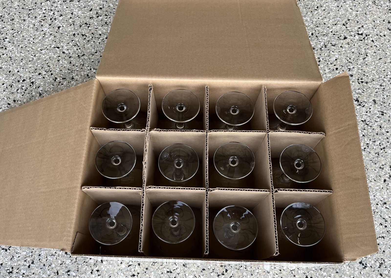 Venmo96 glass goblets, 6” tall, 4” wide. Spice up your reception, gathering event! Used but in perfect condition. Goblets come in 8 boxes, 12 per box.