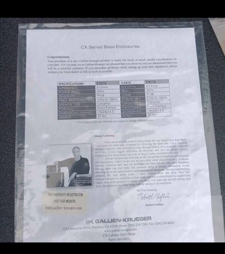 Brand new in box Gallien-Krueger CX410-8 800-watt 4x10-inch 8ohm Bass Cabinet