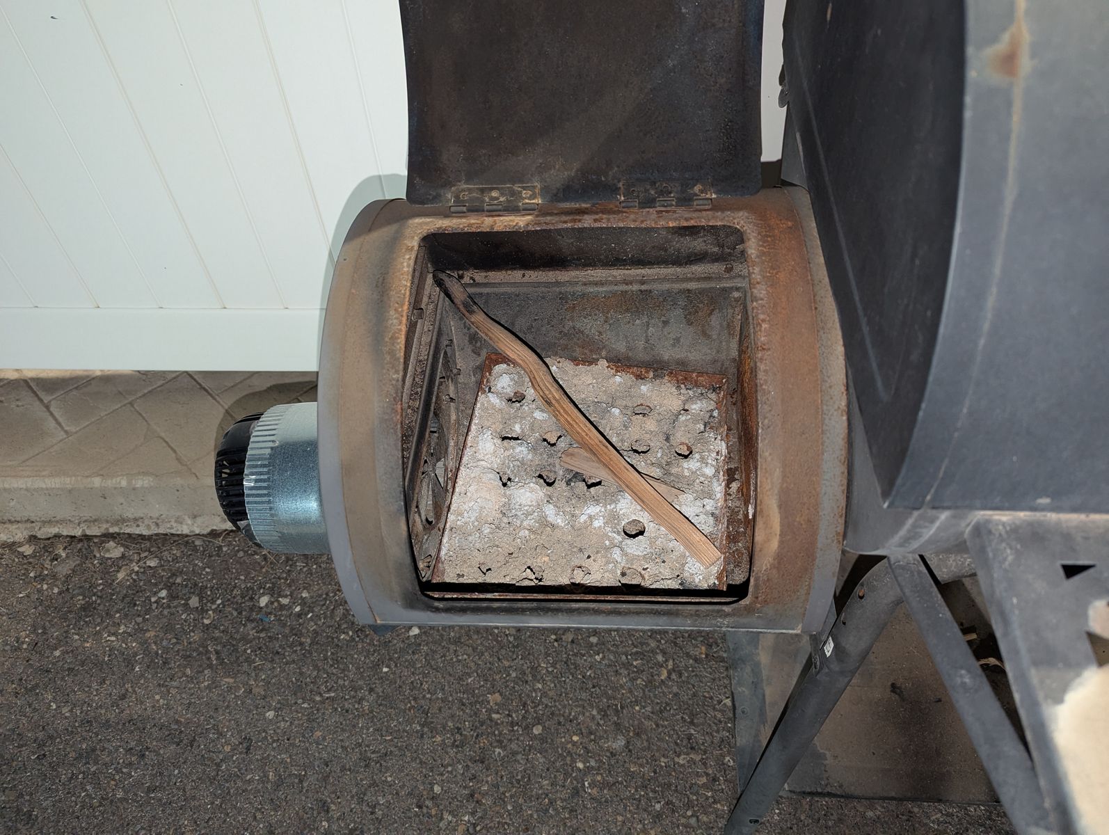 ZelleSimple offset smoker. Works well with charcoal briquettes. I DIY'd a variable-speed electric intake system to help control the fire temperature, which works great.