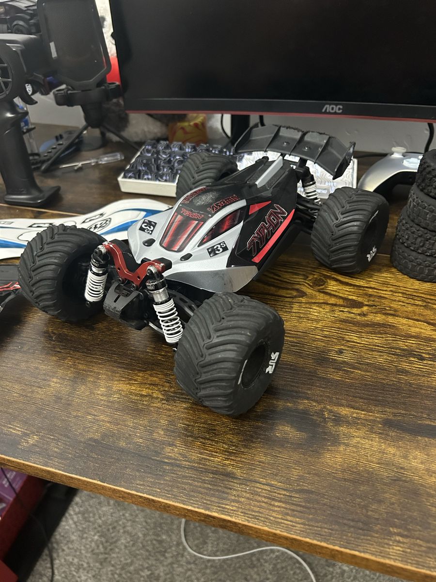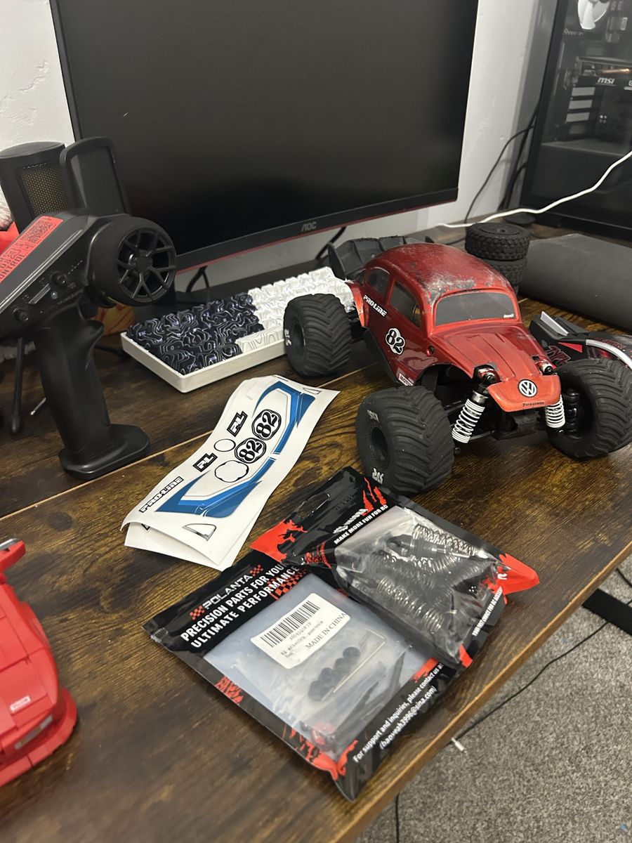 Venmosome of the most fun I’ve had with any rc car only ever took bashing once at a skatepark and bent a steering link but you can buy upgraded ones from gpm for like $10. I just don’t have time to drive it much. A little beat but besides the steering link it’s all cosmetic damage I painted the beetle body a little wrong so the paint chipped and flaked off a bit still looks sick the stock body only has a few runs on it and slid on the roof a couple times. I put some arrma gorgon grom monster truck wheels on and it rips it does a standing backflip and goes about 55 with the bigger tires. Brand new these are about 200 plus around 150 bucks of extra parts and mods I’ve put on it. Comes with everything in the pictures I’m willing to meet halfway or I might even bring it straight to you for the right price.