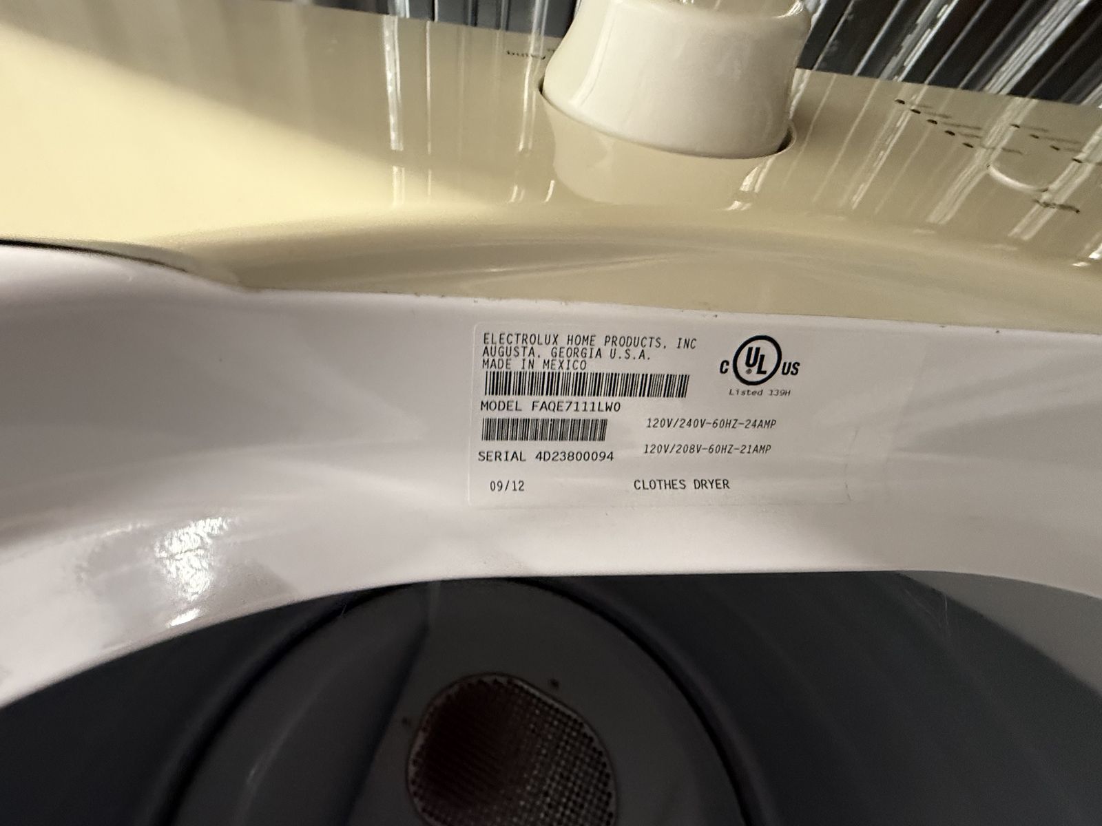 Front load, stackable electric dryer. Made in 2011
