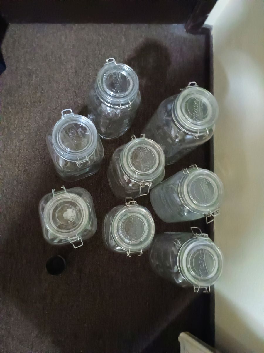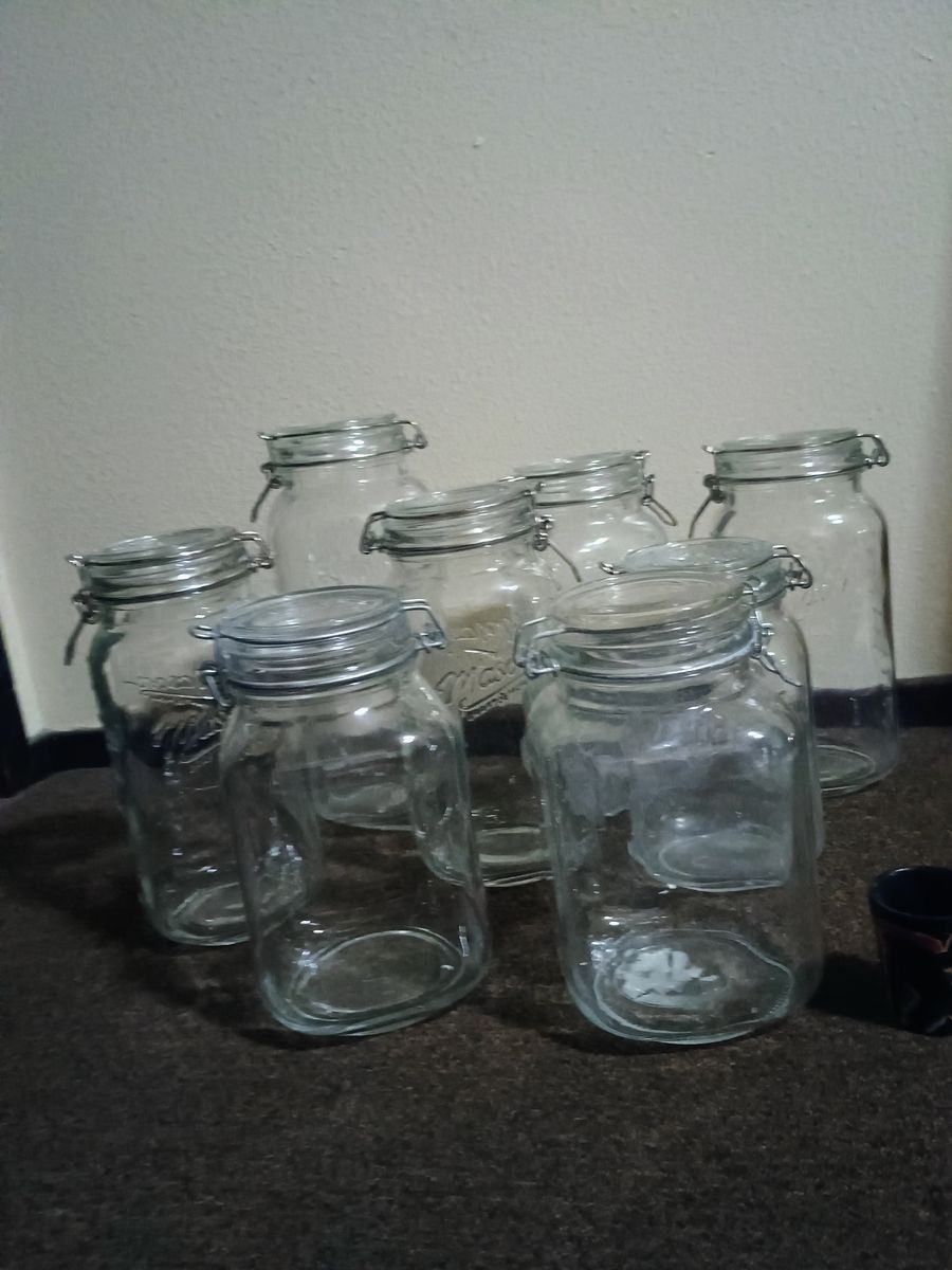 8 jars ranging from half gallon to full gallon size.