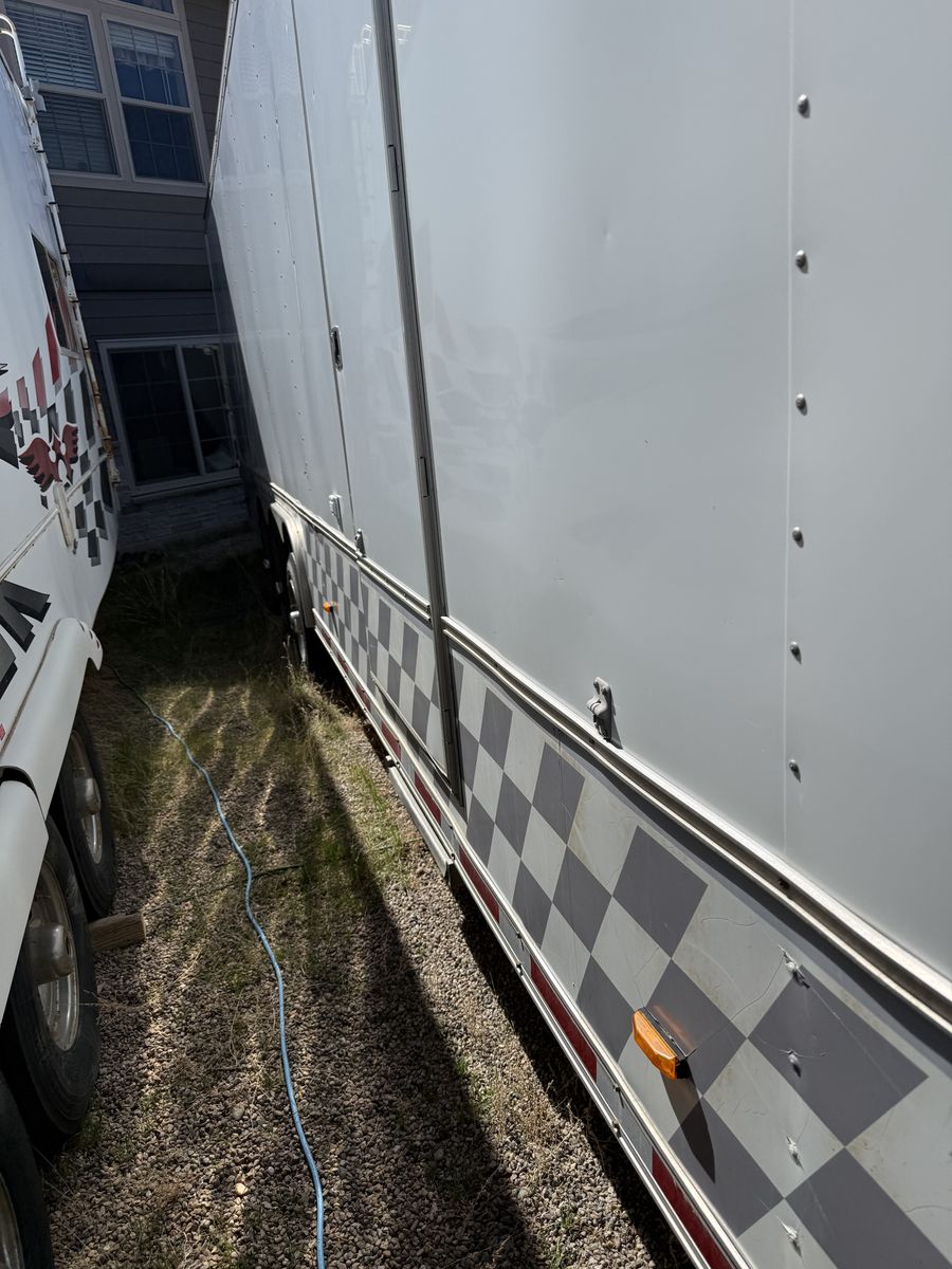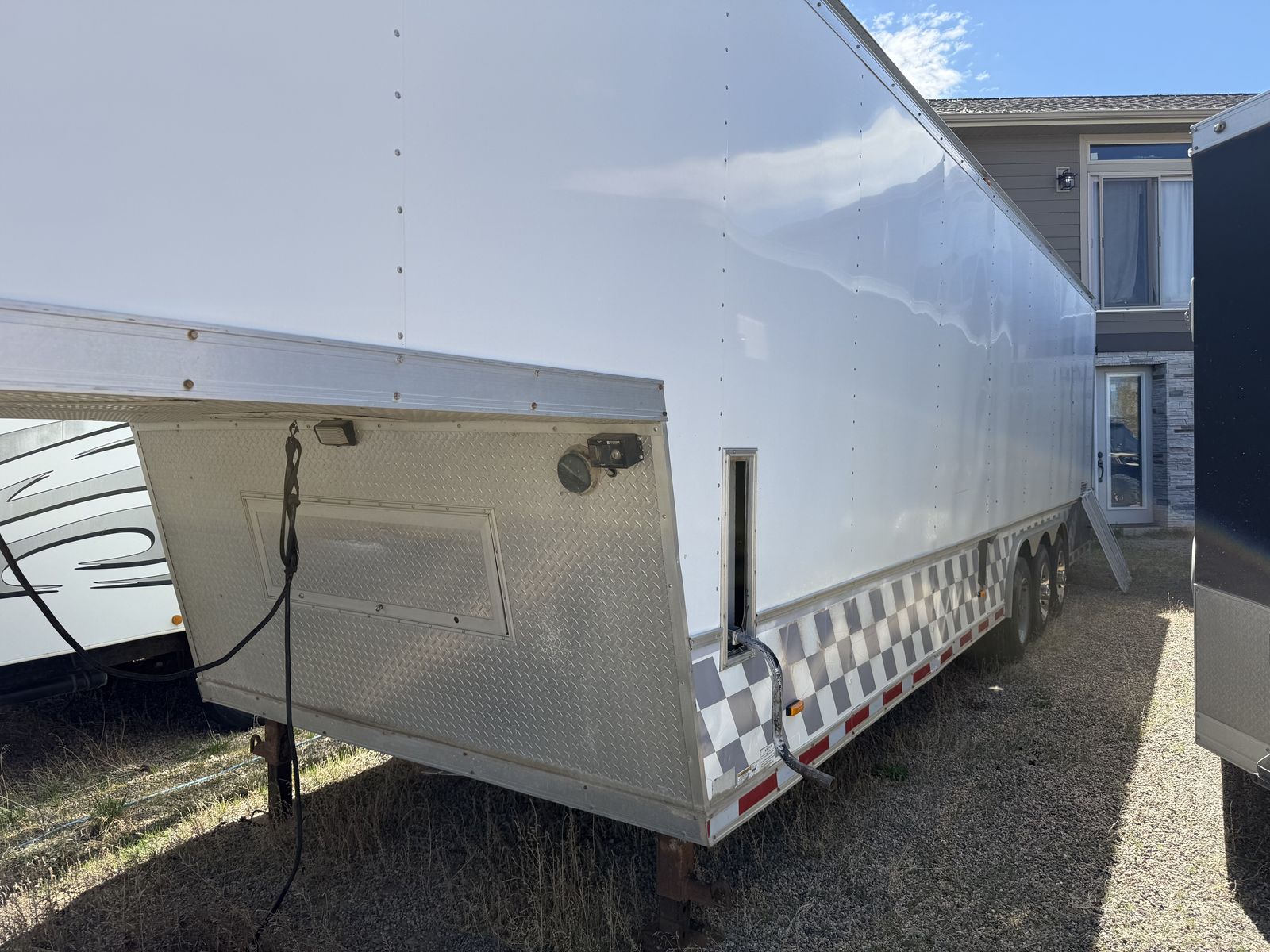 Have triple axle enclosed gooseneck set up for construction super nice trailers. Have shelves built in. Have 2 available. one with ramp rear door. One with dual doors, it has 17.5 tires. The one with ramp doors is set up with generator compartment, has 235/85r 16 tires. Needs new skin on the generator door. Horses rubbed on it lol $25,000 obo