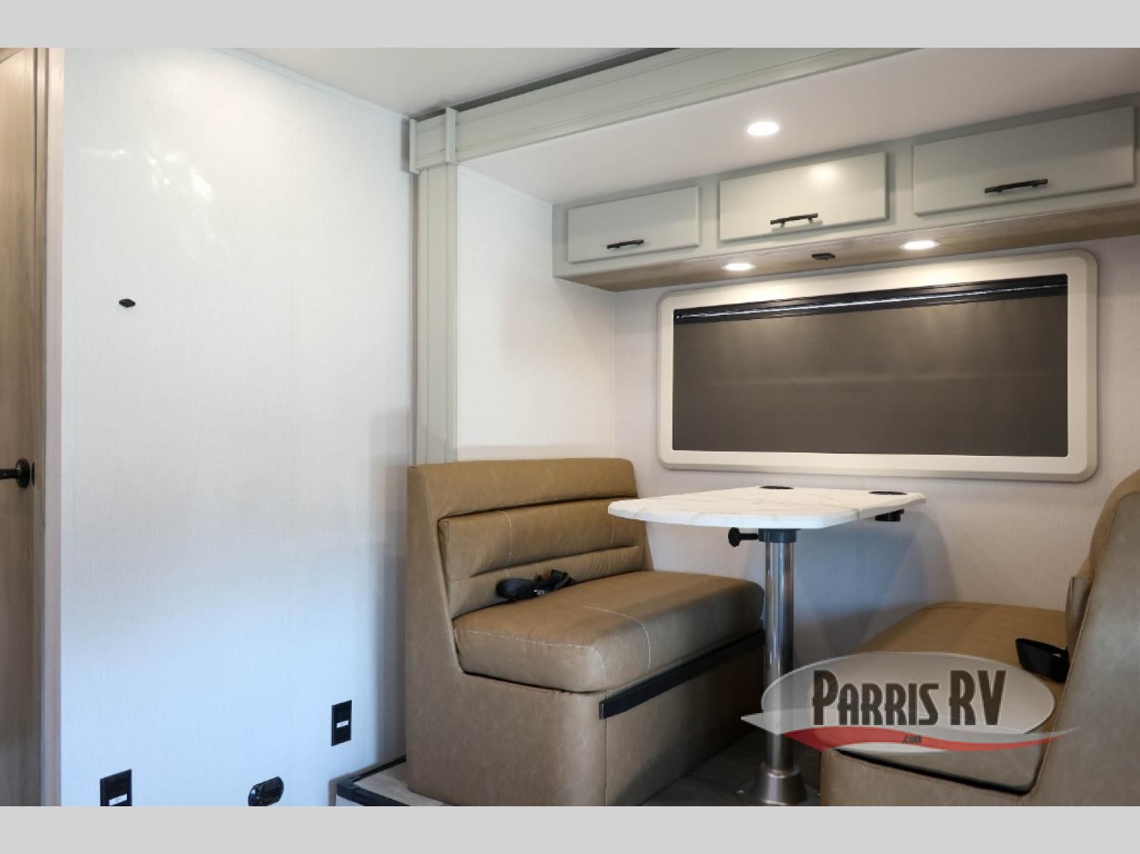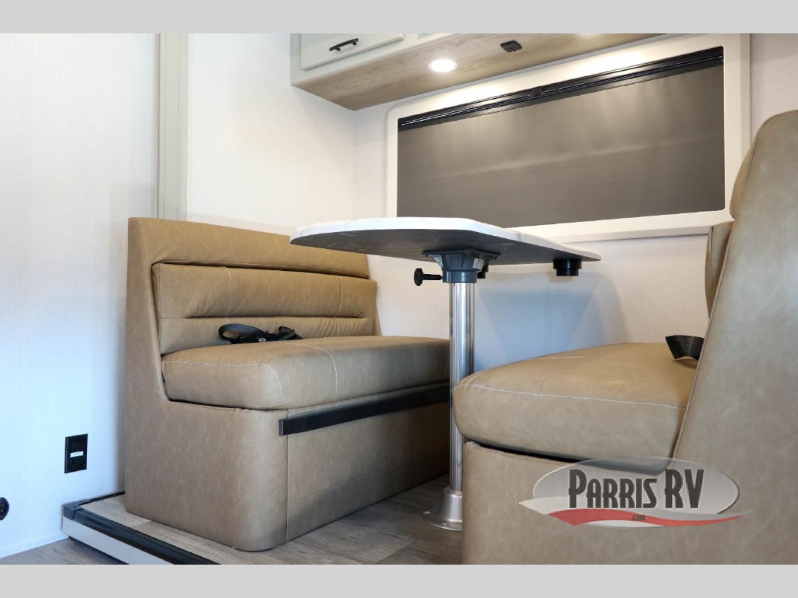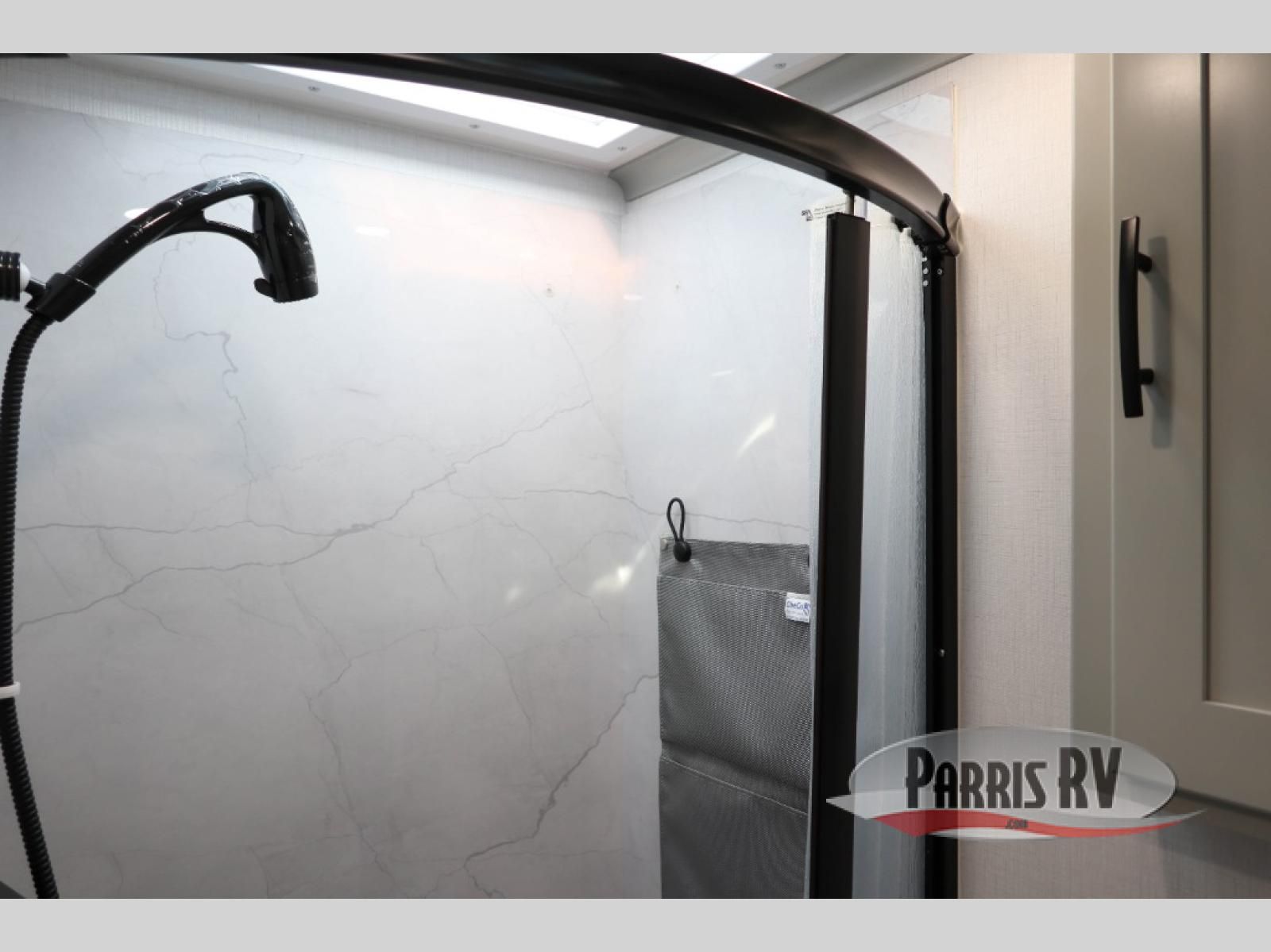 Enjoy a home away from home with this motorhome! The rear private bedroom has a queen bed slide for more interior space and privacy curtains to draw at night. If you need more sleeping space, just add the optional cab over bunk. The booth dinette slide is not only great for enjoying meals and play card games, but can also transform into an extra sleeping space. You could also switch it out for the optional theater seating to meet your specific needs. The bathroom has a shower with a skylight above for added natural lighting and an Oxygenics body spa RV shower head for a relaxing shower, and the vanity sink is just outside the bathroom so one person can get ready while another washes up. Store all of your outdoor gear in the exterior seamless rotocast storage compartment with LED lighting to see clearly at night too!