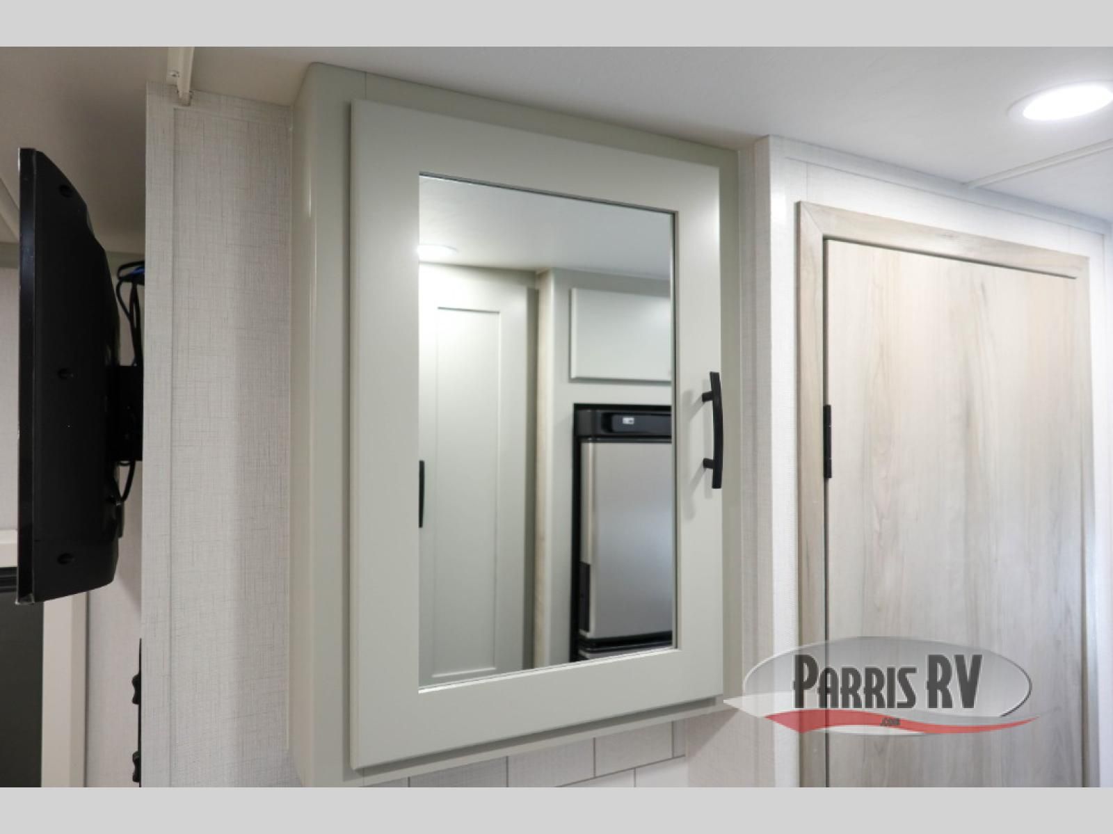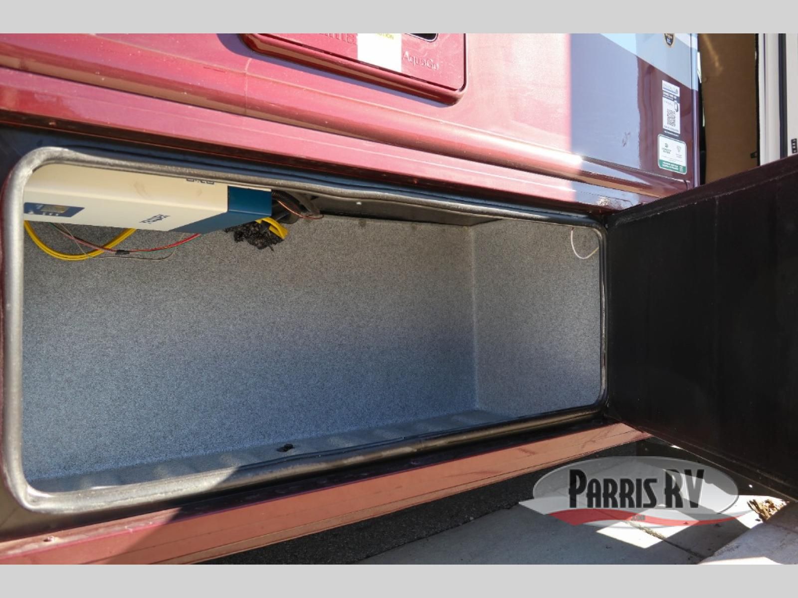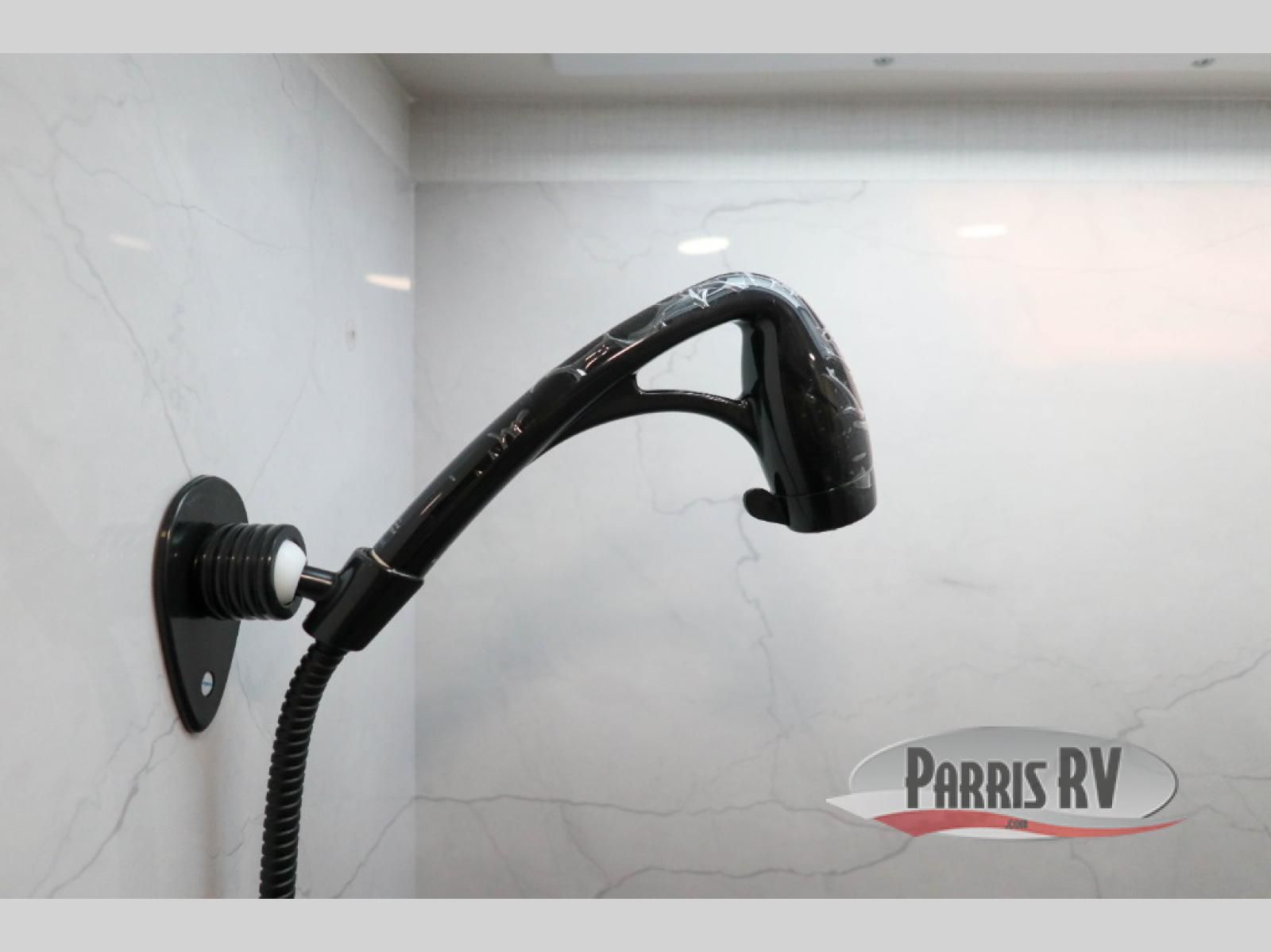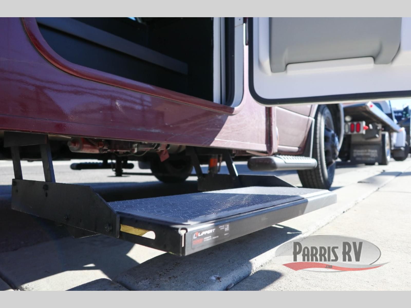 Enjoy a home away from home with this motorhome! The rear private bedroom has a queen bed slide for more interior space and privacy curtains to draw at night. If you need more sleeping space, just add the optional cab over bunk. The booth dinette slide is not only great for enjoying meals and play card games, but can also transform into an extra sleeping space. You could also switch it out for the optional theater seating to meet your specific needs. The bathroom has a shower with a skylight above for added natural lighting and an Oxygenics body spa RV shower head for a relaxing shower, and the vanity sink is just outside the bathroom so one person can get ready while another washes up. Store all of your outdoor gear in the exterior seamless rotocast storage compartment with LED lighting to see clearly at night too!