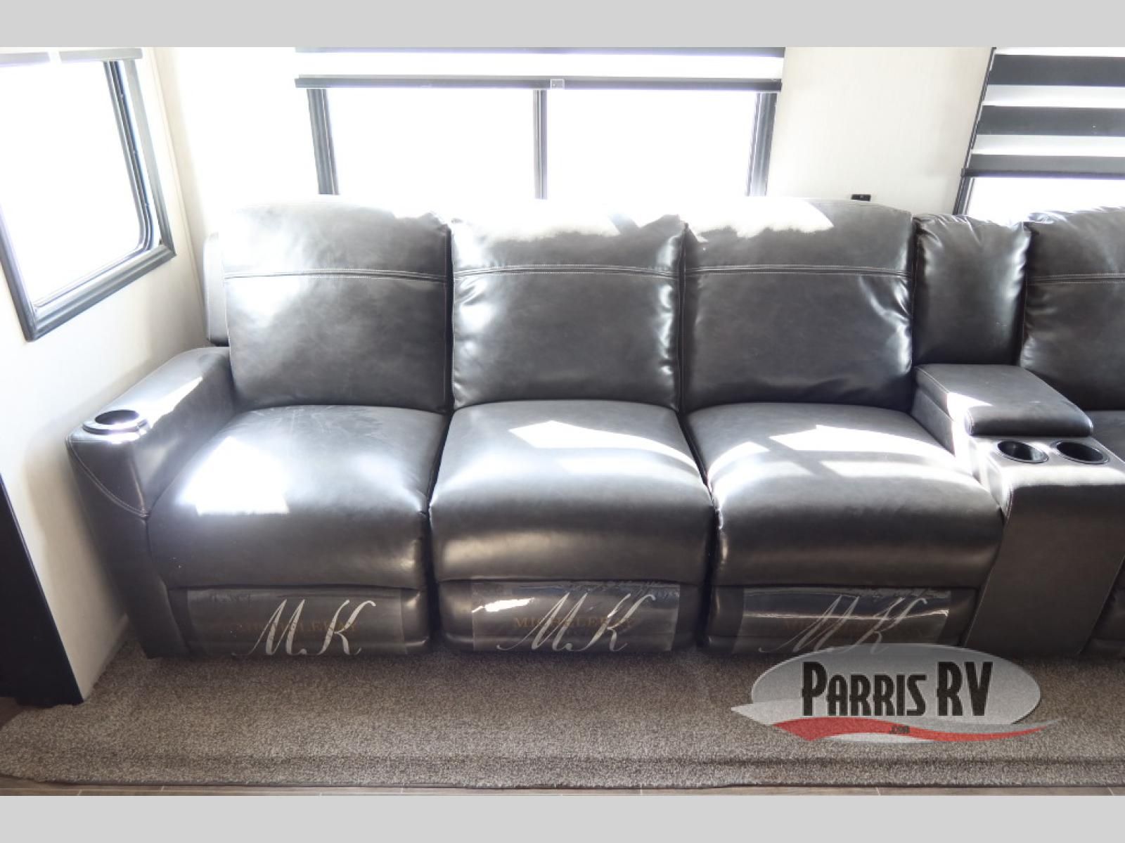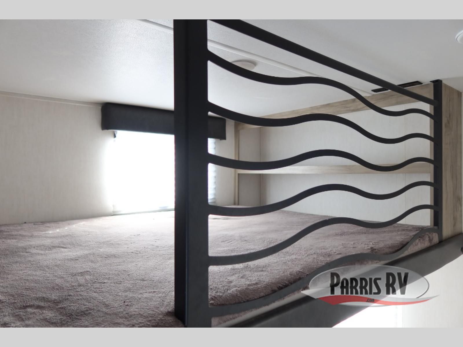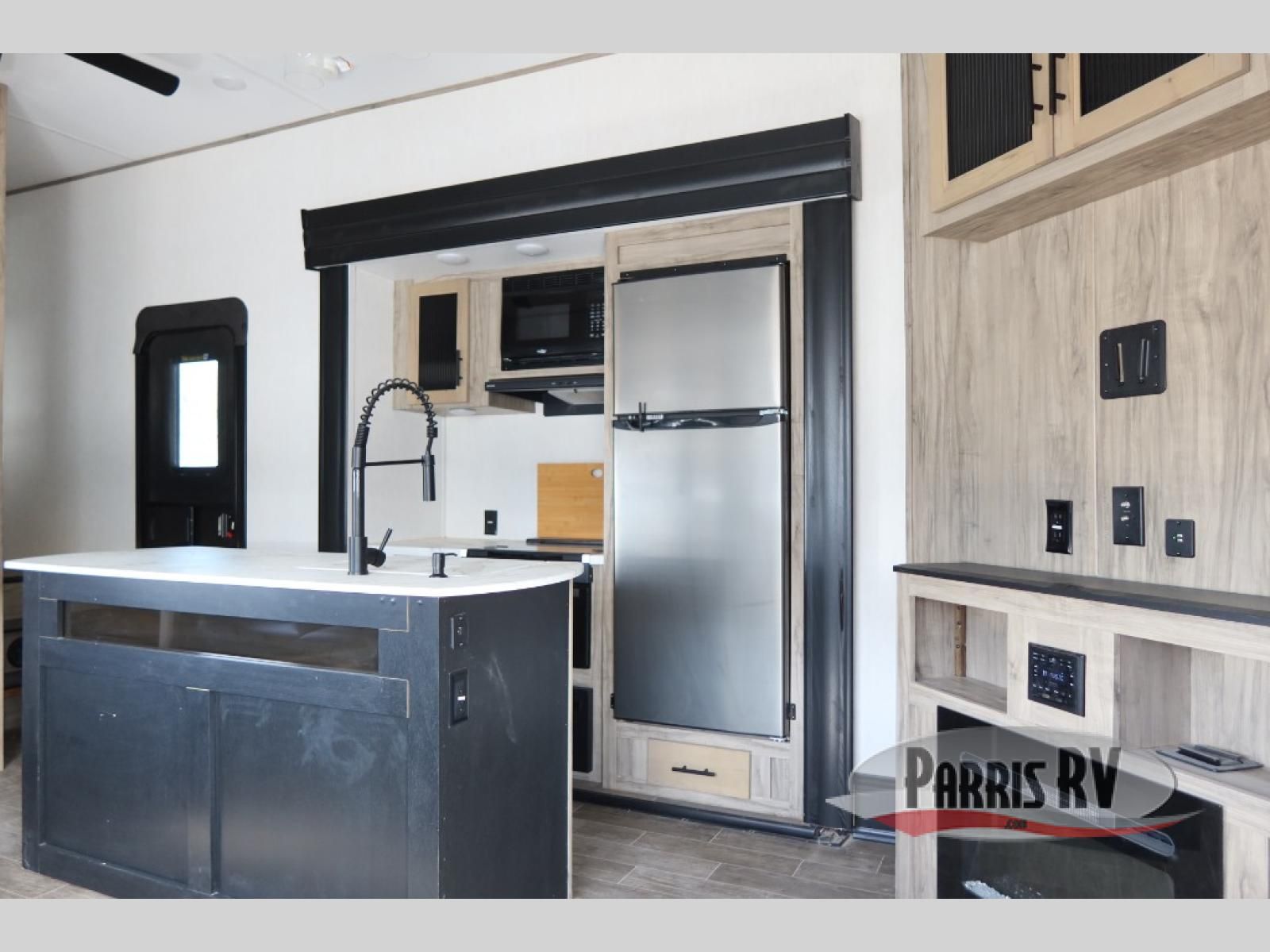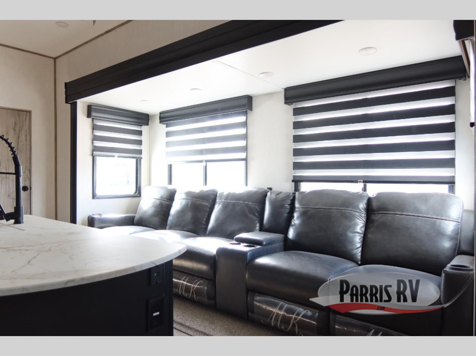 You will have amazing residential comfort in the Forest River Cherokee Arctic Wolf Suite fifth wheels! These units have a "SuperStor" dual-cavern basement storage compartment to allow you to bring more gear, and they have been constructed with a "ToughBend" rigid skirt metal design, a 1x engineered wood "SuperTruss" roof structure with 3/8" decking, and a 5/8" tongue-and-groove plywood floor decking. Each model includes Leash Latch pet safety technology, an outside shower with hot/cold water, preparations for an exterior TV, motion-sensing lighting, and a smart monitor panel with smart phone Bluetooth connectivity. The supersized central air conditioning unit (15,000 BTU) with quick cool air dump feature and second oversized 15,000 BTU ducted air conditioner will cool your unit down in a snap when you camp in the hot summer months.