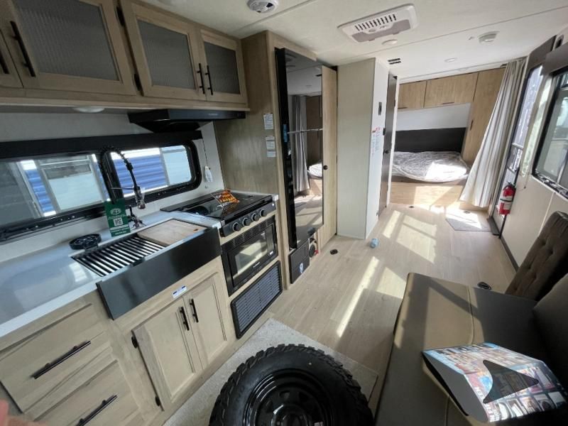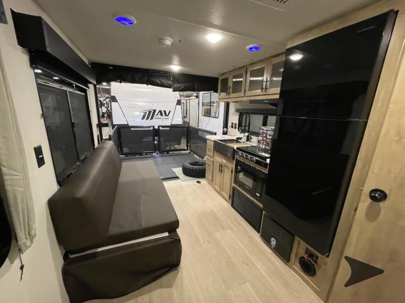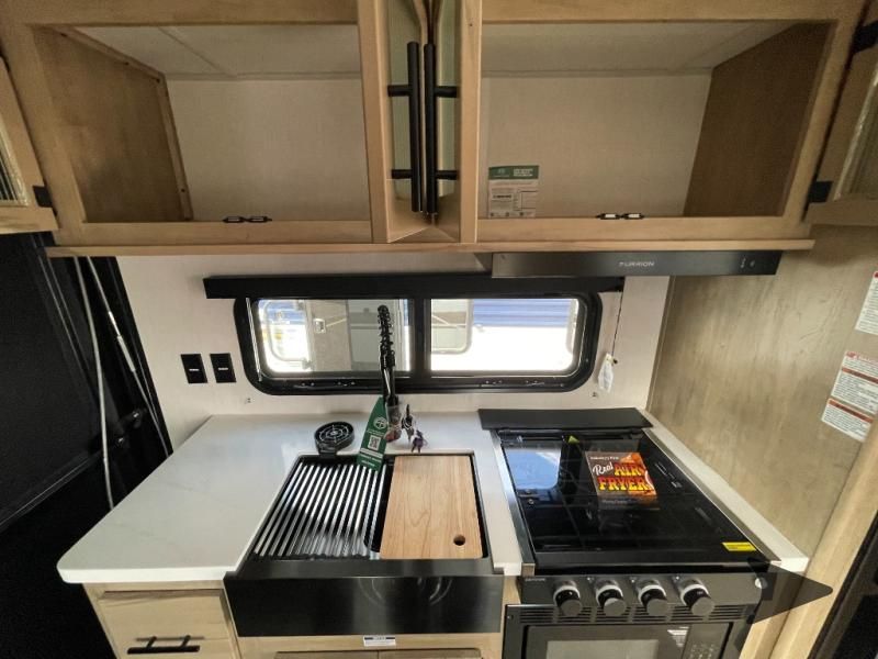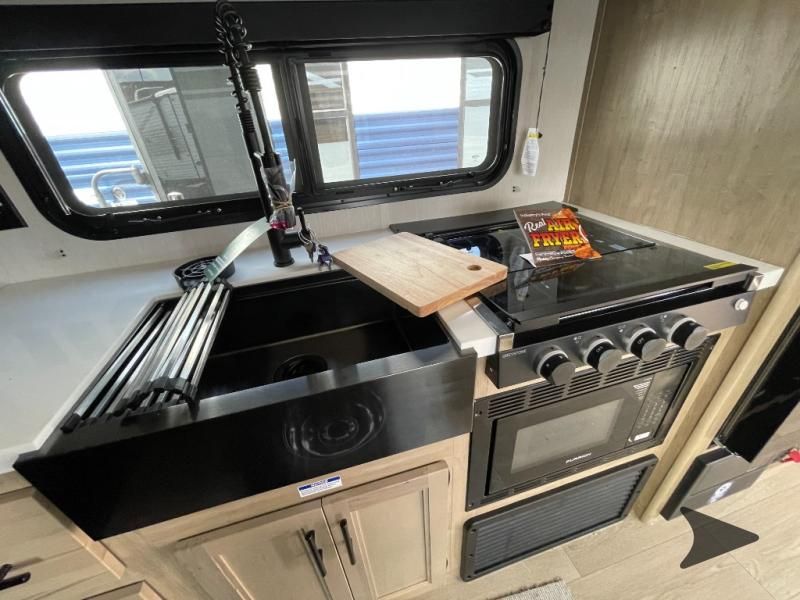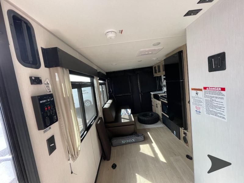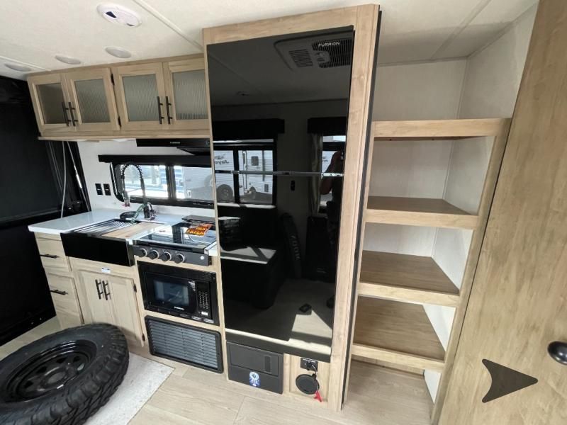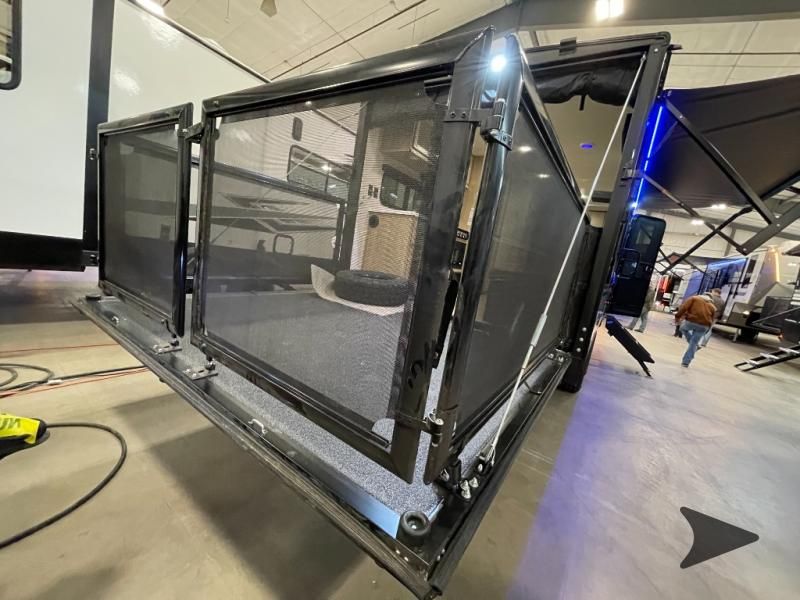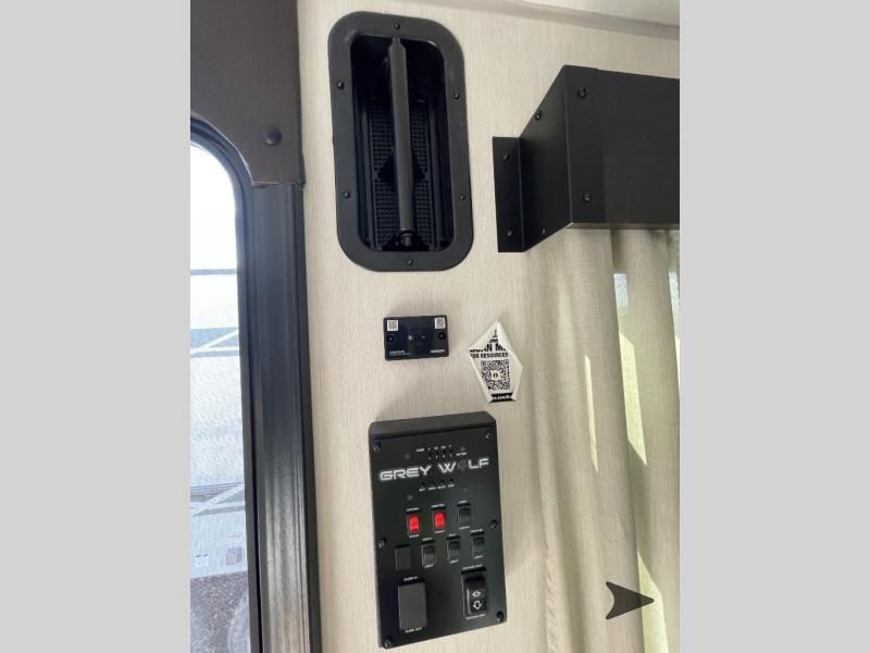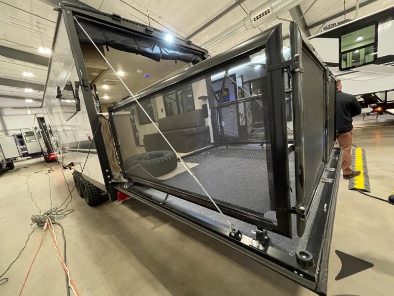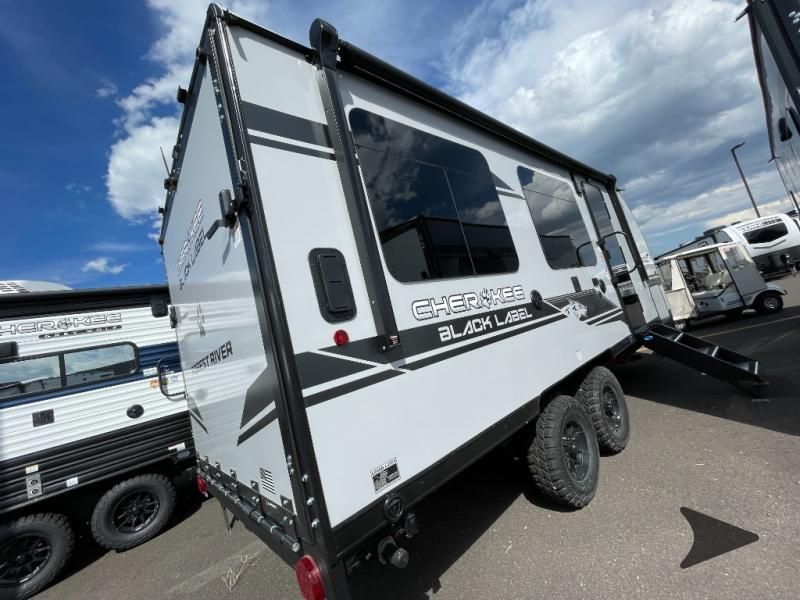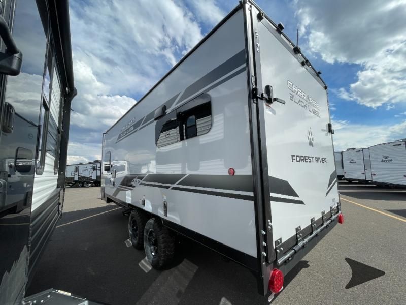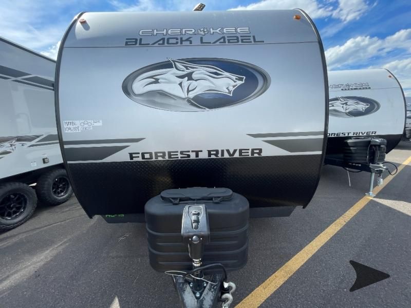 Forest River Cherokee Grey Wolf Black Label toy hauler 18RRBL highlights: Up to 15' 2" Cargo Space Exterior Storage Fold-Down Sofa Queen-Size Bed Full Kitchen You will undoubtedly love this Cherokee Grey Wolf Black Label toy hauler! Because of its ability to have up to 15' 2" of cargo space, you can easily load up the ramp door and head out to your outdoor toy land, and you can bring much more than just your toys since this trailer also comes with exterior storage, a bedside wardrobe, overhead cabinets, a refrigerator, and a kitchen pantry. The full bathroom is another feature that is going to allow you to experience a true getaway since you won't need to find public facilities to use while you're gone, and the USB charging stations will allow you to charge your phone inside while you're outside playing. The Cherokee Grey Wolf Black Label by Forest River feature distinctive features, at-home comforts, and durable construction materials so you can enjoy your RV for years to come, plus they are outstandingly affordable! You can choose between travel trailers, toy haulers, and even fish houses, depending on the camping style you prefer. The Black Label upgrade features high gloss get coat exterior sidewalls, frameless windows, upgraded solid surface countertops and more!