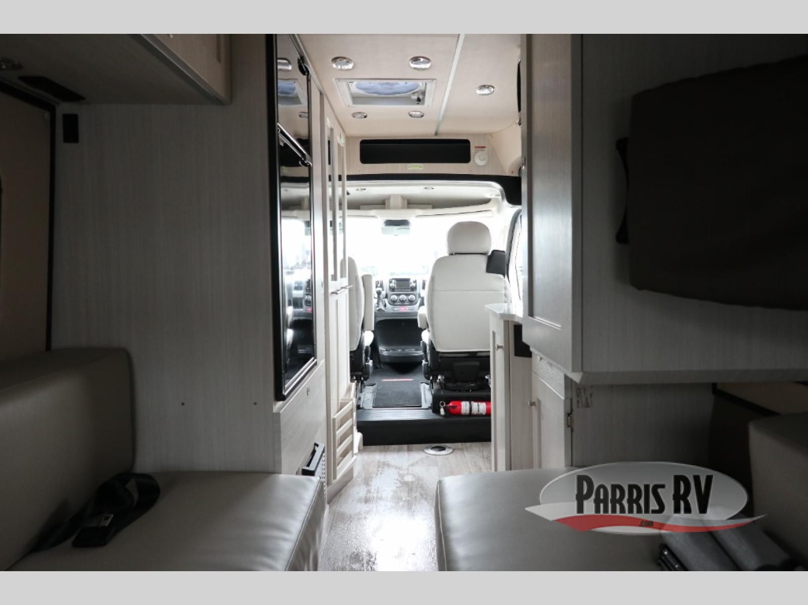 Chase your outdoor excursions in this comfortable motorhome for two! You will find side-facing rear power sofas that can convert to twin beds or a king-size bed for your comfort. If you're needing more sleeping space, just add the optional folding mattress for the front captain's seats! You can prepare at-home meals in the galley that features a two-burner propane stove, a 5-cu. ft. refrigerator, plus a counter extension with a charging station for your tablet or phone. After you've freshened up in the convenient wet bath, head outdoors for the day to enjoy the sunshine. When you return, you can make popcorn in the microwave oven and watch a movie on the 24" Smart TV!