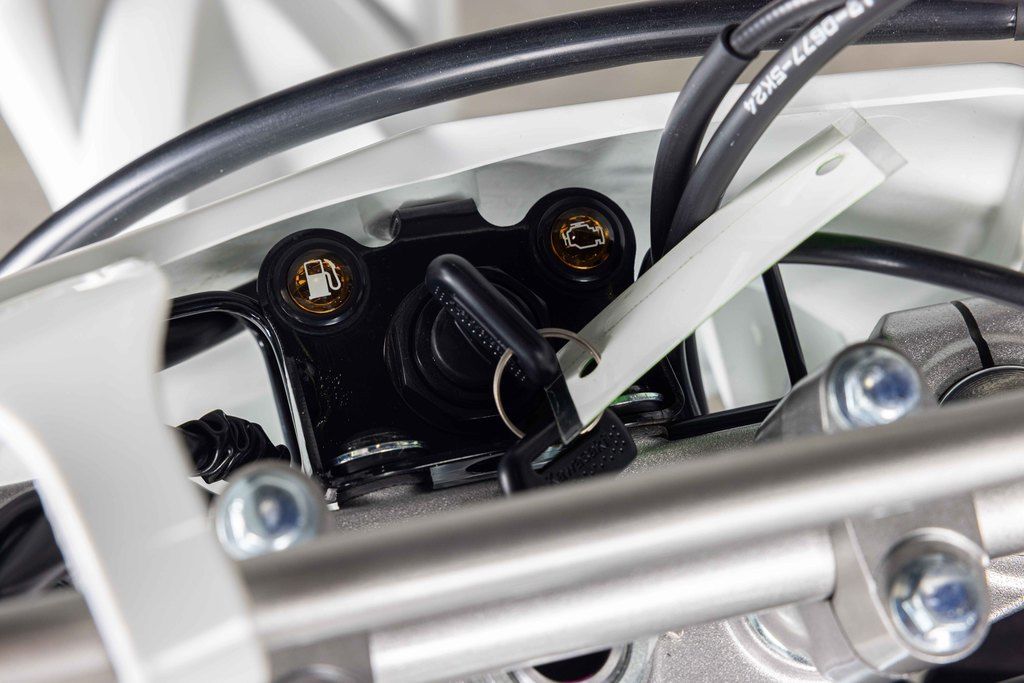 Be ready for whatever the trails throw your way. The KLX®230R off-road motorcycle takes rugged off-road capability and pairs it with convenient features that go the distance, including a keyed ignition, key-operated fuel tank cap, and a large fuel tank.